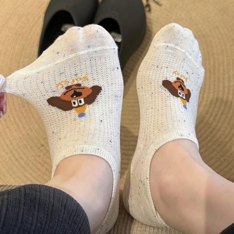 Женские летние тонкие хлопковые милые мультяшные невидимые силиконовые нескользящие носки с не спадающей пяткой