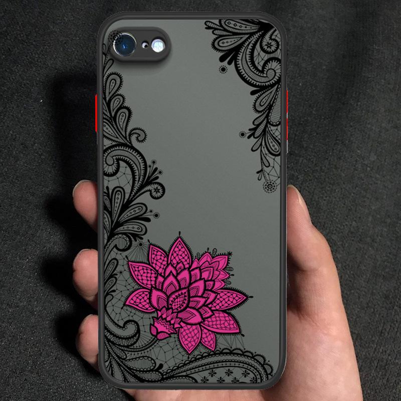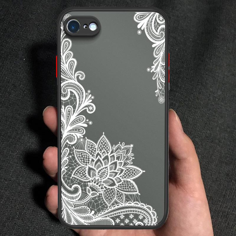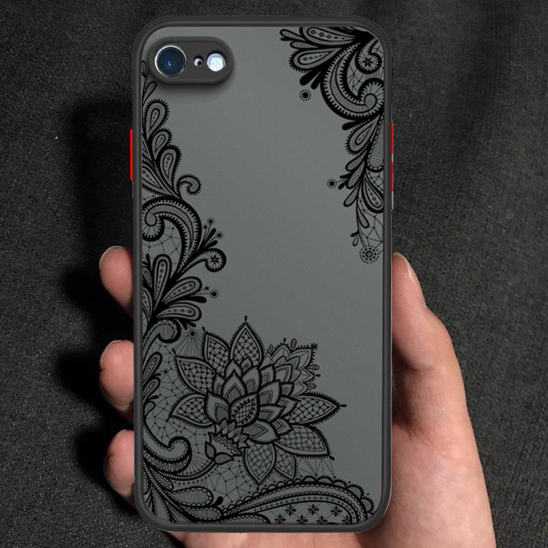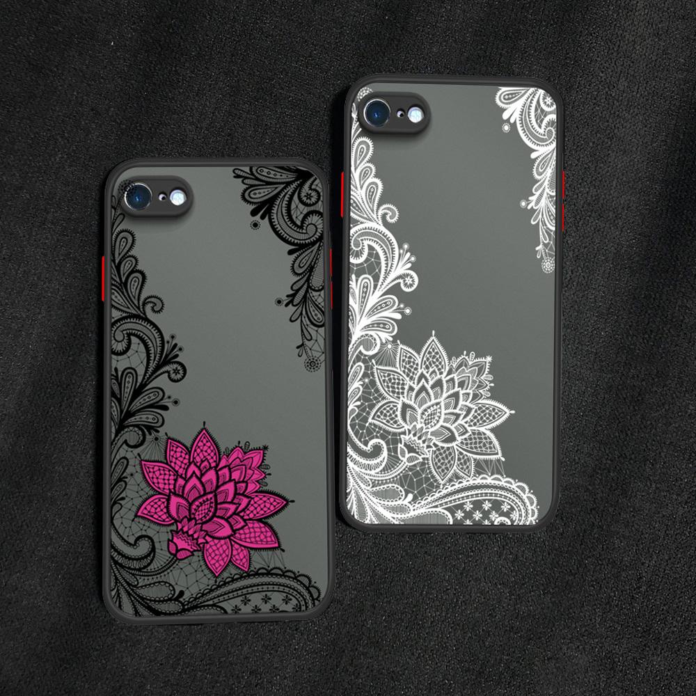 Кружевной цветочный узор Матовый Прозрачный Жесткий Чехол для телефона Мягкий Силиконовый Край Полная Защита Чехол для iPhone 16 17 Samsung A16 A53 Redmi 10C 12 Note13
