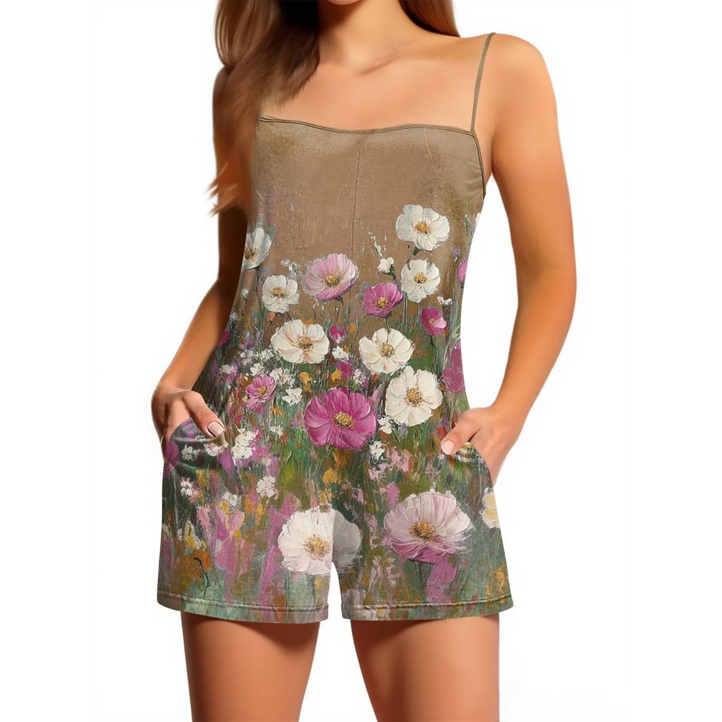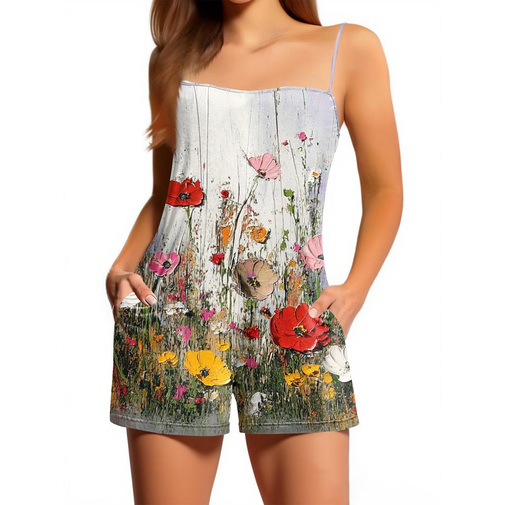 Женский повседневный модный цветочный принт без рукавов подтяжки с карманами комбинезон шорты