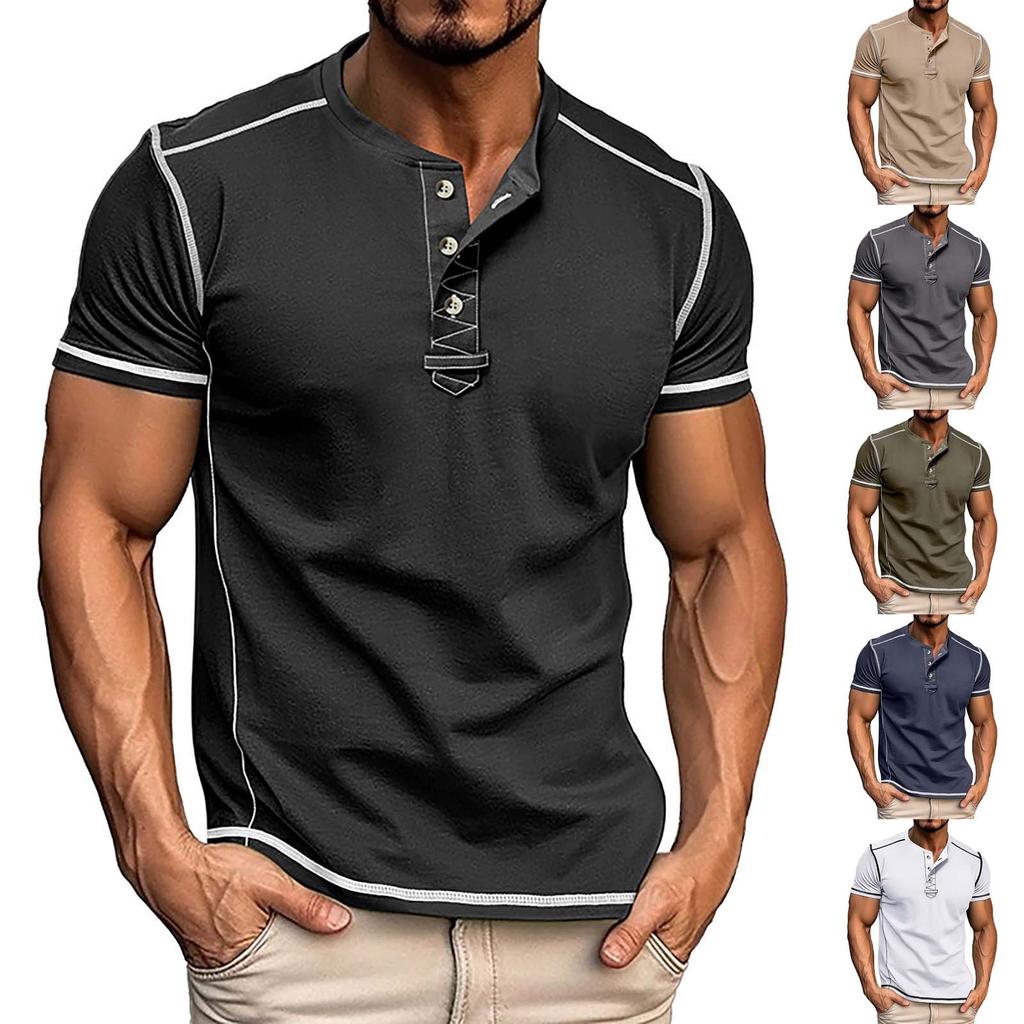 Мужская футболка с короткими рукавами и воротником-лацканами, повседневный топ с круглым вырезом