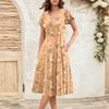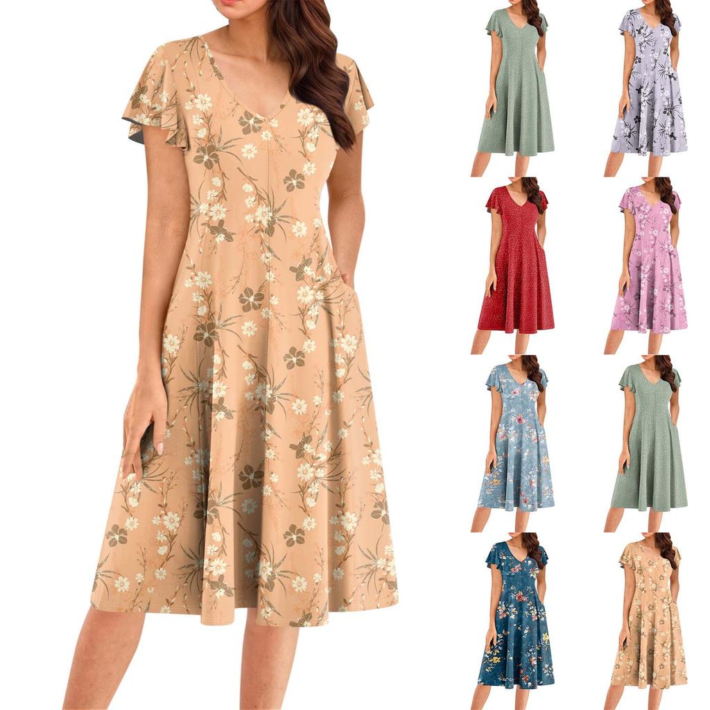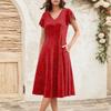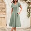 Женское летнее модное элегантное платье миди в стиле ретро с V-образным вырезом и оборками на рукавах — купить товар онлайн с бесплатной доставкой по всему миру!