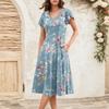 Женское летнее модное элегантное платье миди в стиле ретро с V-образным вырезом и оборками на рукавах