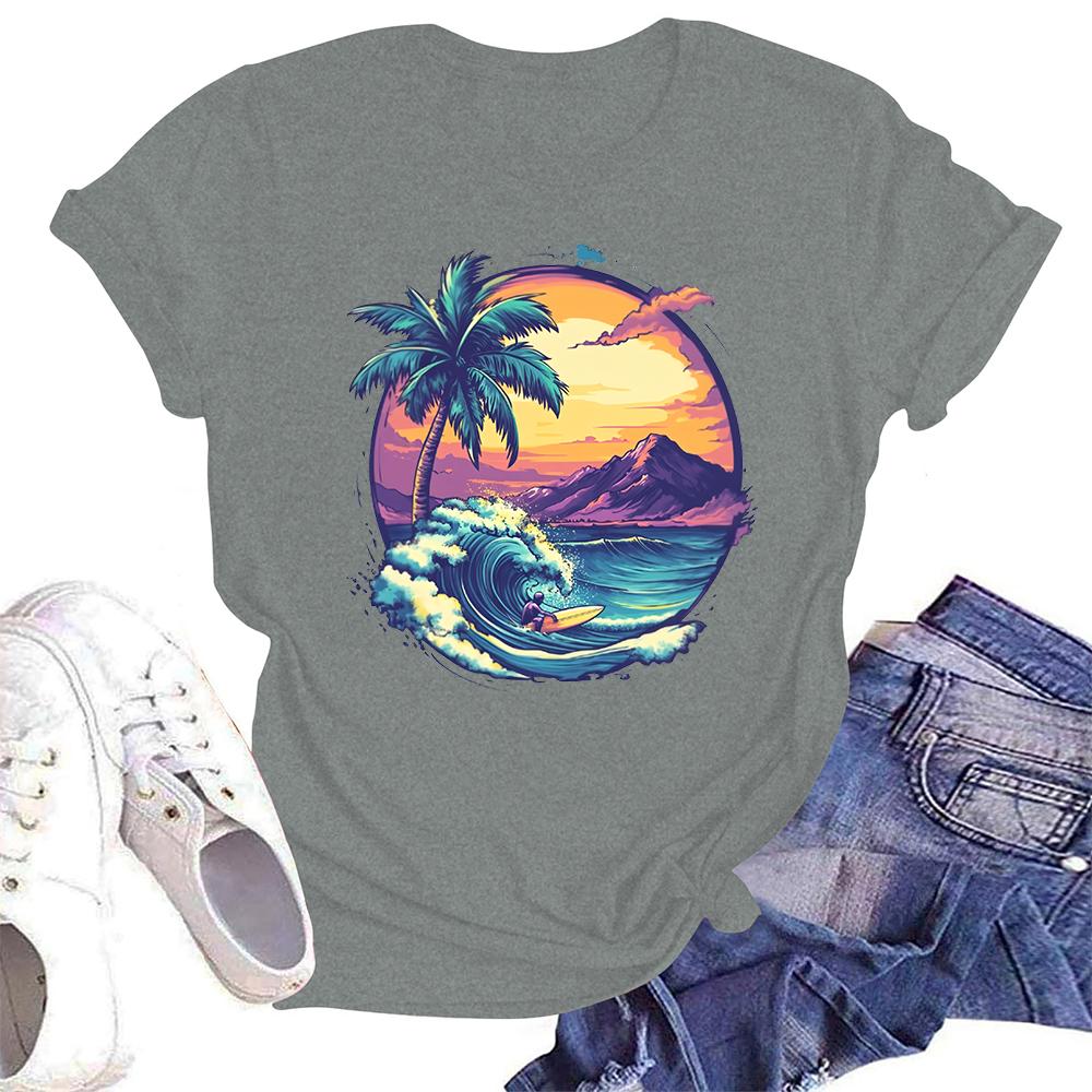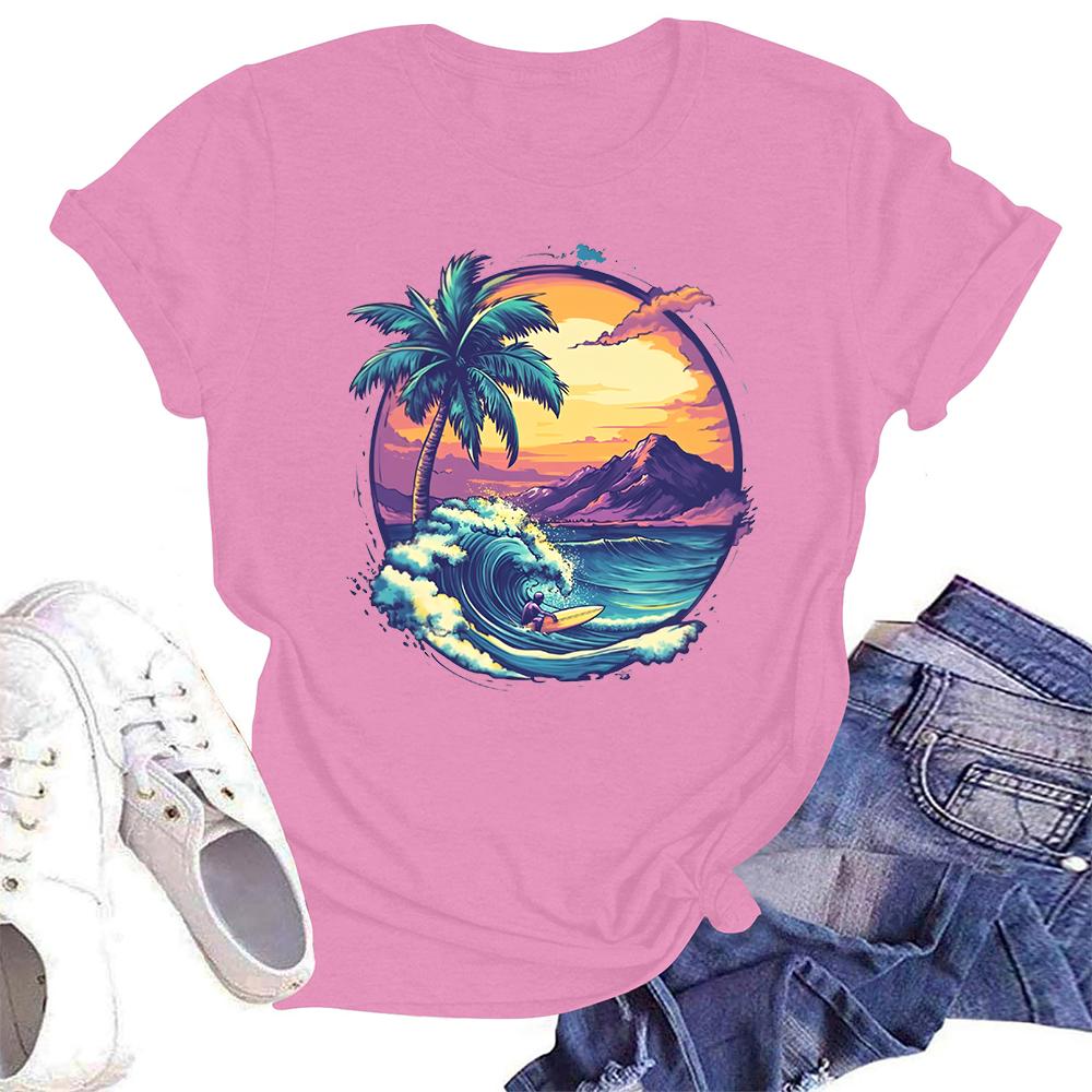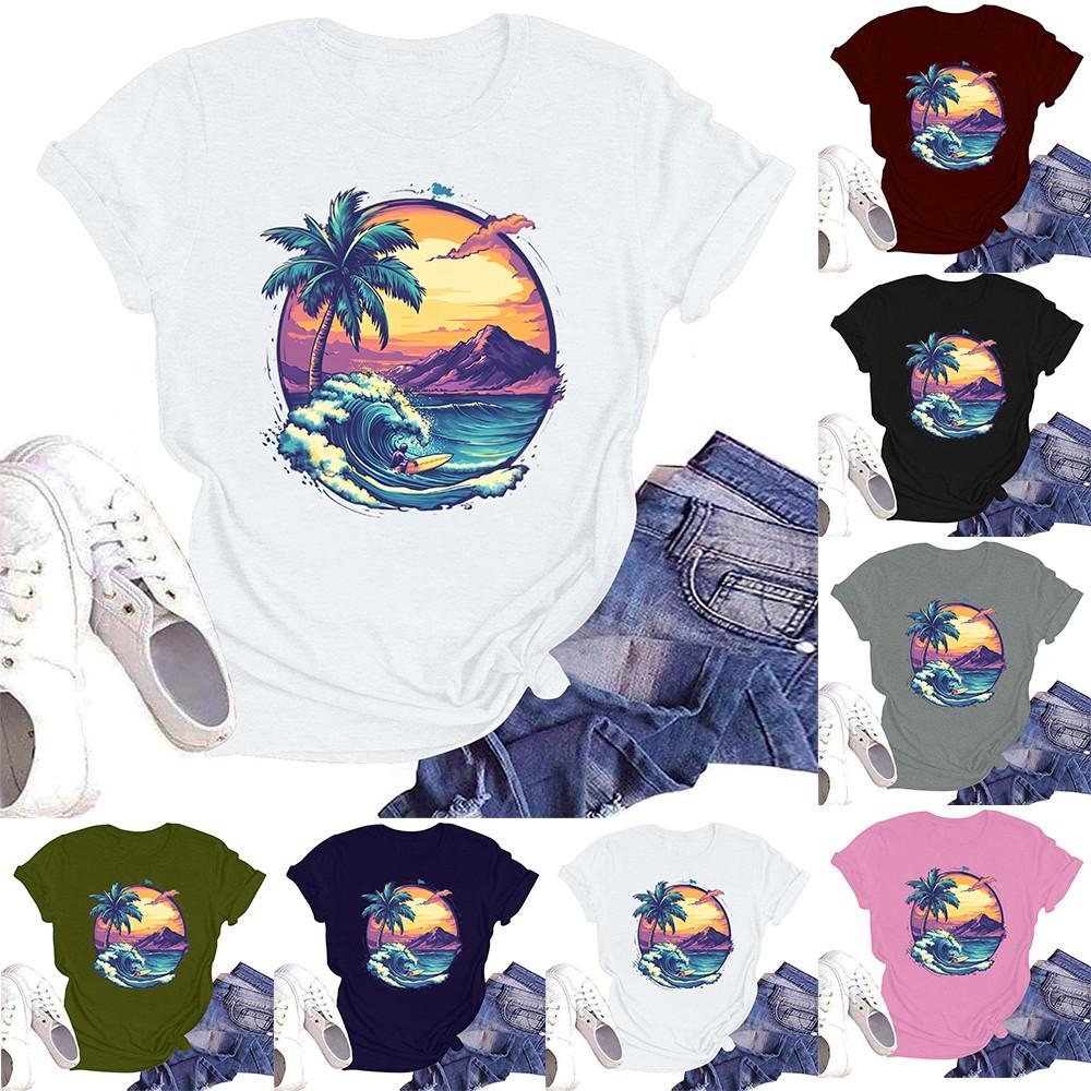 Женская повседневная свободная футболка с принтом, круглый вырез, пуловер, короткий рукав, топ