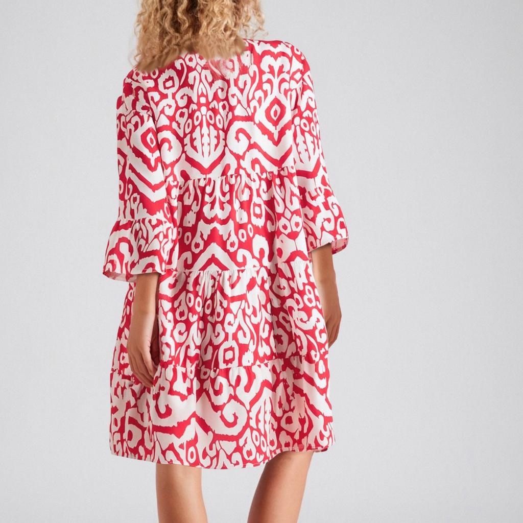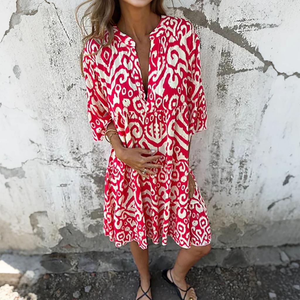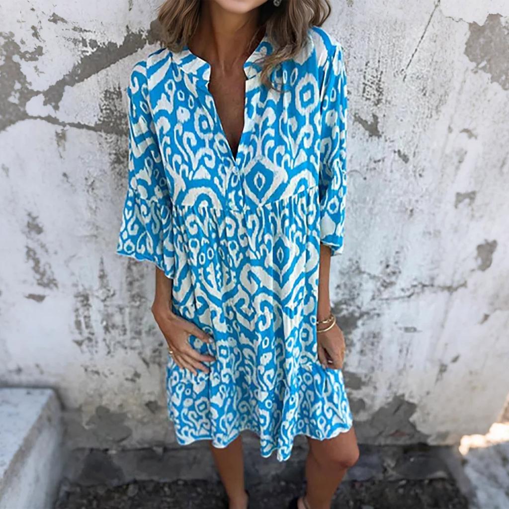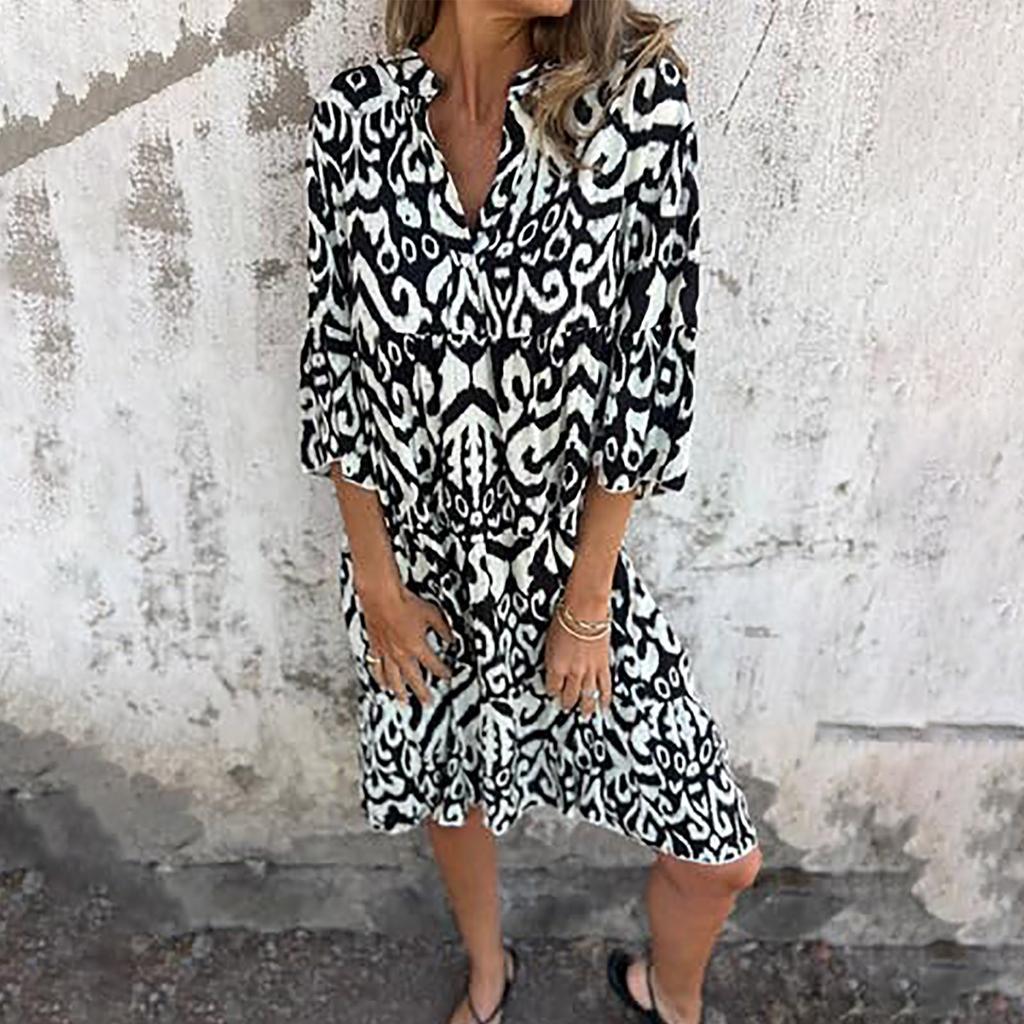 Женское модное платье с V-образным вырезом, свежим принтом и рукавом три четверти