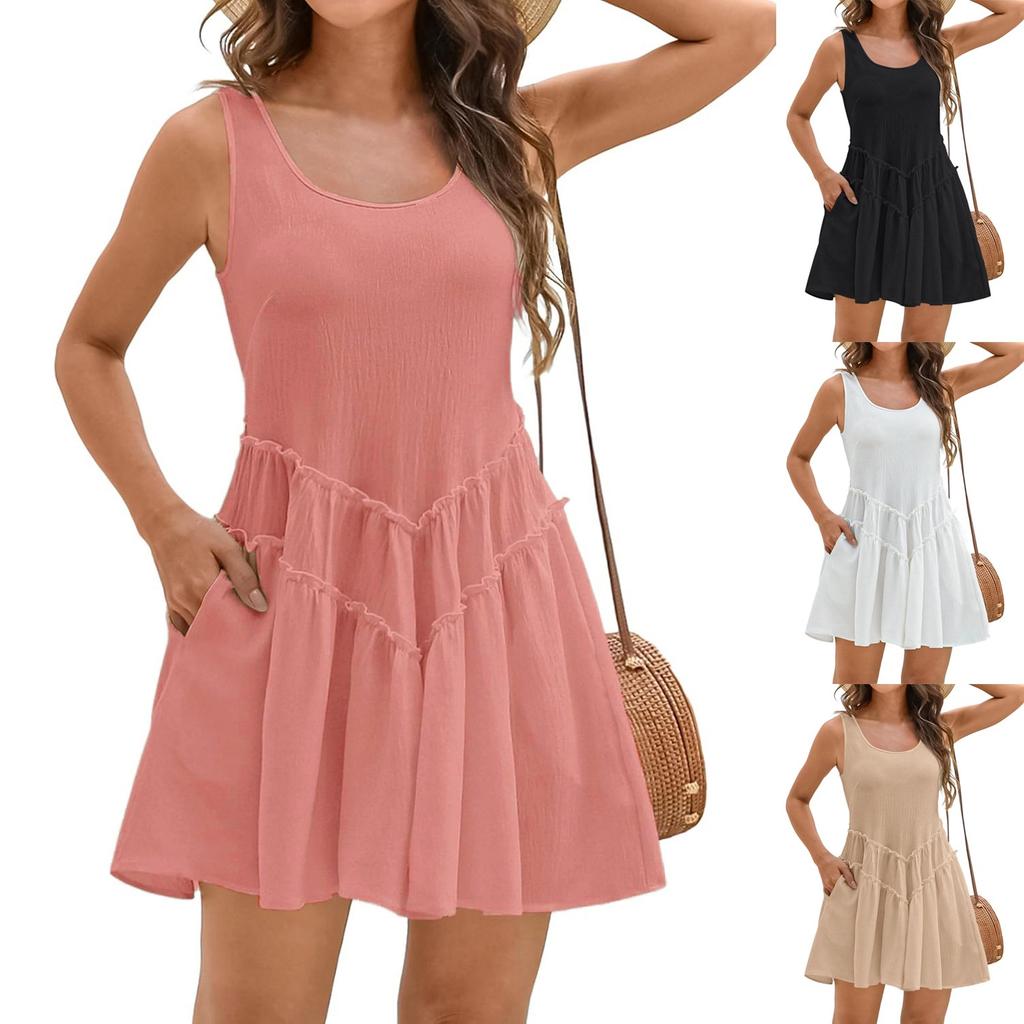 Женское летнее повседневное платье с квадратным вырезом и карманом, симпатичное платье-сарафан без рукавов с высокой талией, платья-миди — купить товар онлайн с бесплатной доставкой по всему миру!