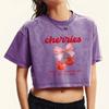 Вишни Бант Мультяшные Принты Укороченная Футболка Женская Повседневная Футболка из Хлопка Летний Хип-Хоп Женская с Коротким Рукавом