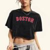Красная надпись Бостонский принт Выстиранная футболка Женская футболка с круглым вырезом Ретро Футболки Модные укороченные футболки Топы с коротким рукавом