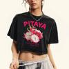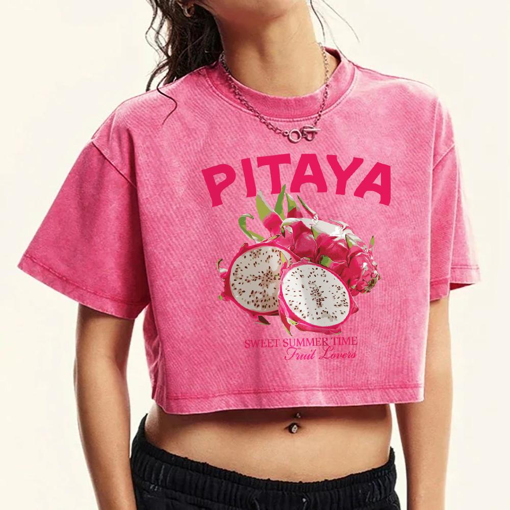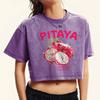 Женская футболка с принтом свежих фруктов питайи, выстиранная, повседневная, разноцветная, мягкая, облегающая, уличная, хлопковая, укороченный топ