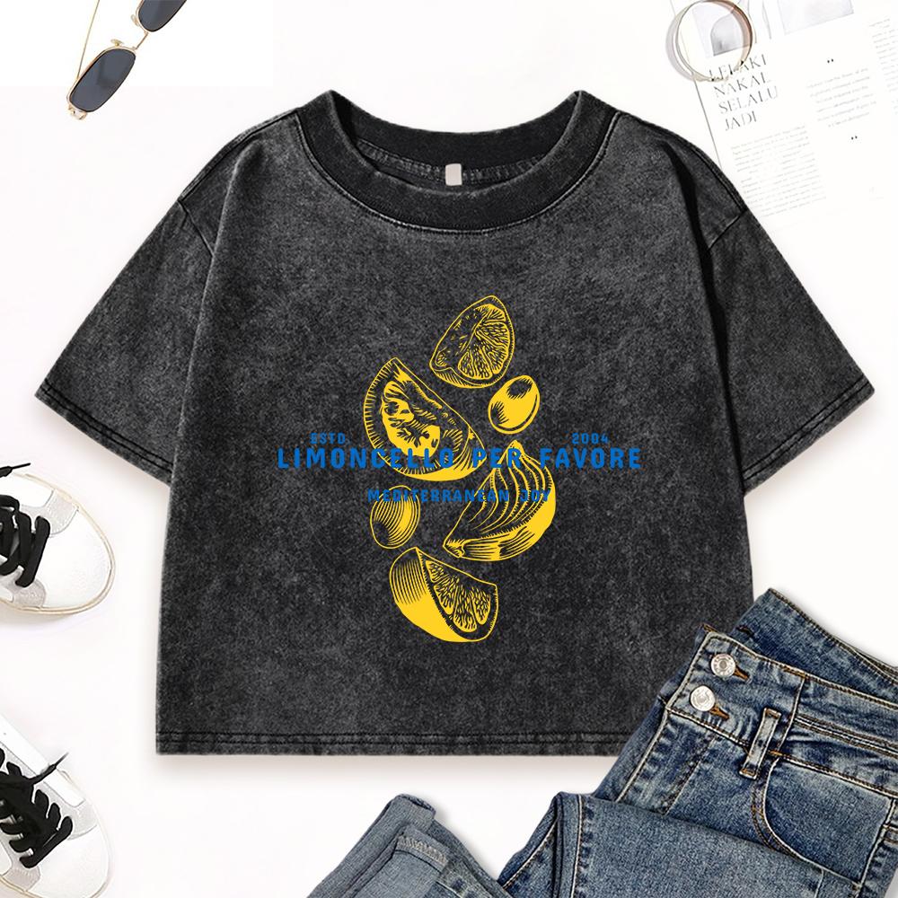 Лимонный Челло Арт Принт Письмо Выстиранные Укороченные Футболки Женские Многоцветные Хлопковые Футболки Летняя Облегающая Одежда Спортивные Топы
