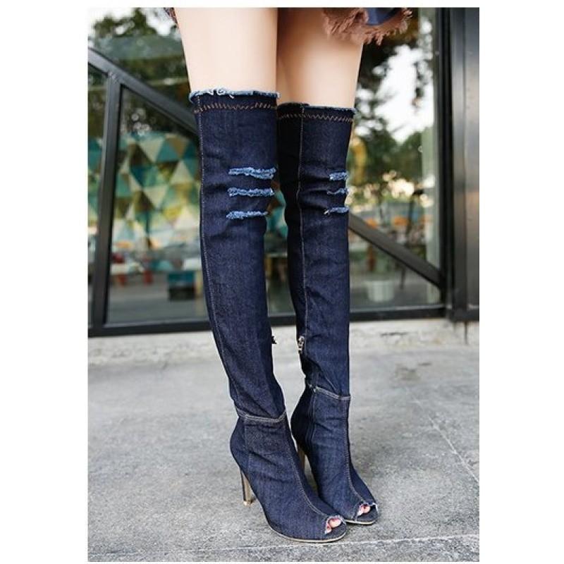 Женские ботинки Ботильоны с открытым носком на высоком каблуке Ботинки до колена Облегающие ботинки на высоком каблуке-шпильке Джинсовые ботинки
