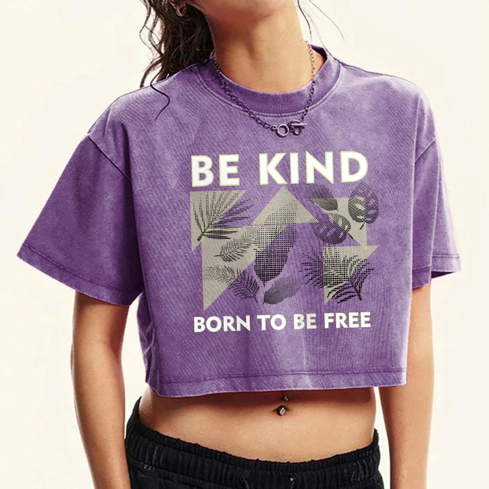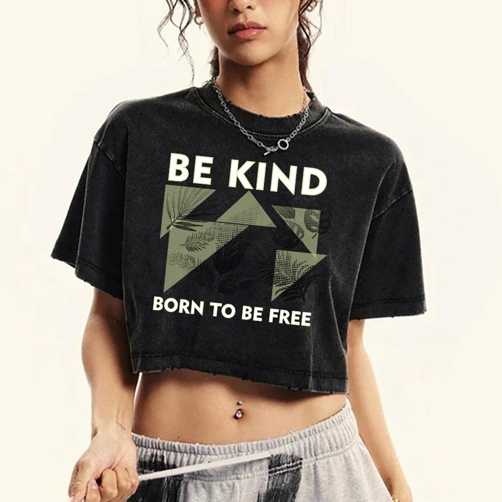 Будь добрым Рожден быть свободным Принт листьев Выстиранные футболки Женские Ретро футболки Летние футболки Уличные Хлопковые футболки Топ