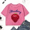 Свежая красная клубника фруктовый принт выстиранная облегающая футболка женская повседневная футболка с круглым вырезом летняя одежда хлопковый топ