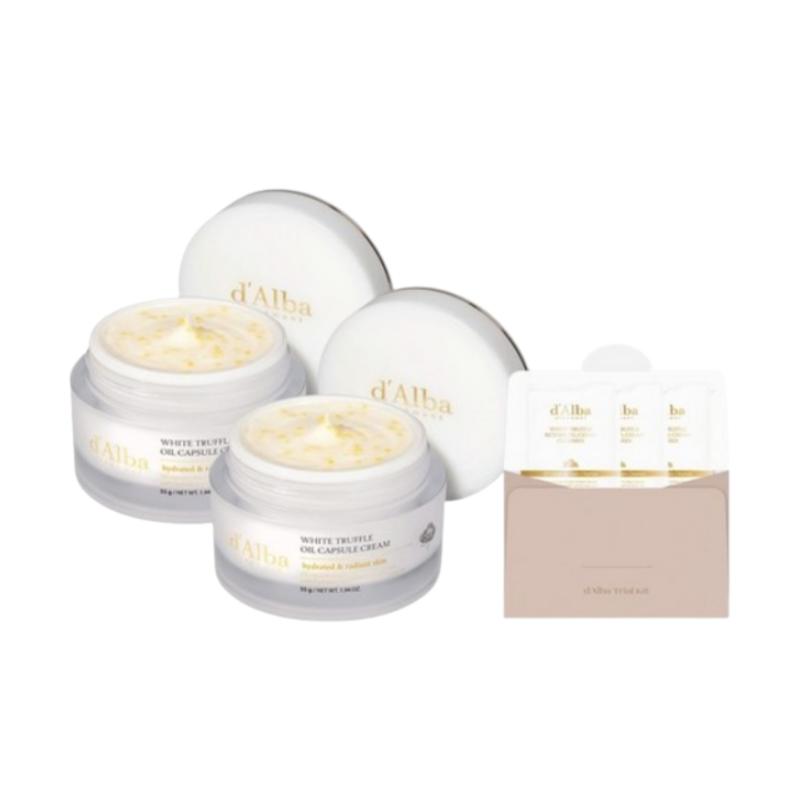 Этот премиальный набор для ухода за кожей d'Alba сочетает в себе два полноразмерных крема-капсулы с маслом белого трюфеля и три мини-очищающих средства-сыворотки.. Крем с масляными капсулами обеспечивает интенсивное увлажнение и уход за эластичностью, а очищающее средство мягко очищает кожу, оставляя ее гладкой и свежей.
