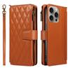For iPhone 14 Pro Max Leather Case with Card Holder,RFID Blocking Wallet Phone Cover Rhombus Pattern — купить товар онлайн с бесплатной доставкой по всему миру!