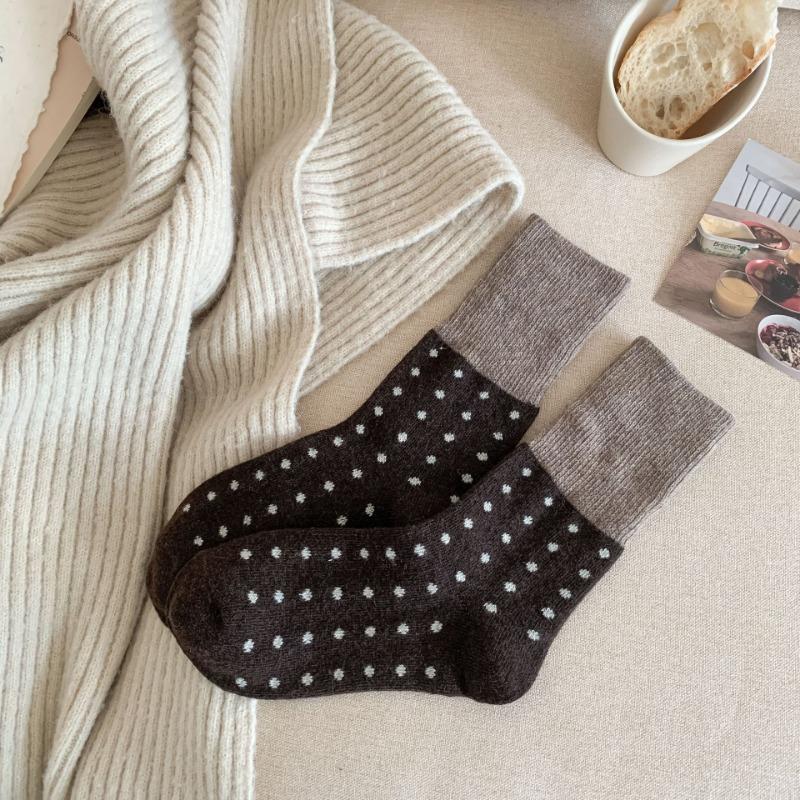 Толстые и теплые шерстяные носки в горошек для осени и зимы, мужские носки до середины икры с цветными блоками для женщин