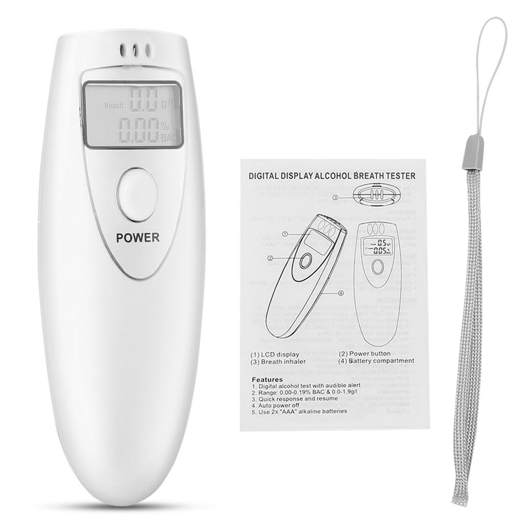 Белый портативный одноэкранный тестер алкоголя в выдыхаемом воздухе, цифровой ЖК-алкотестер, анализатор-детектор