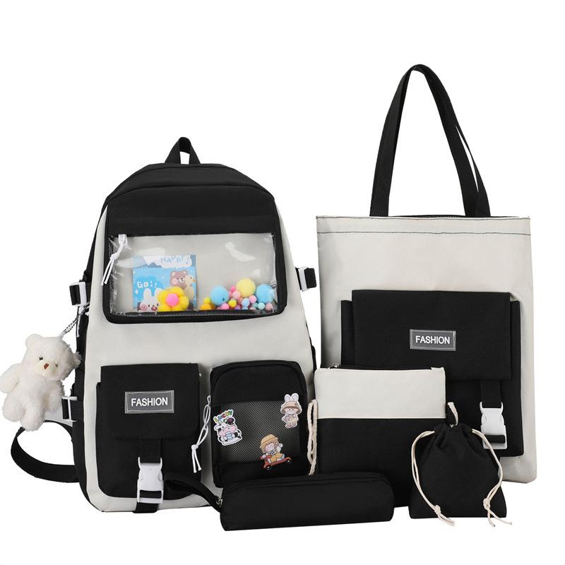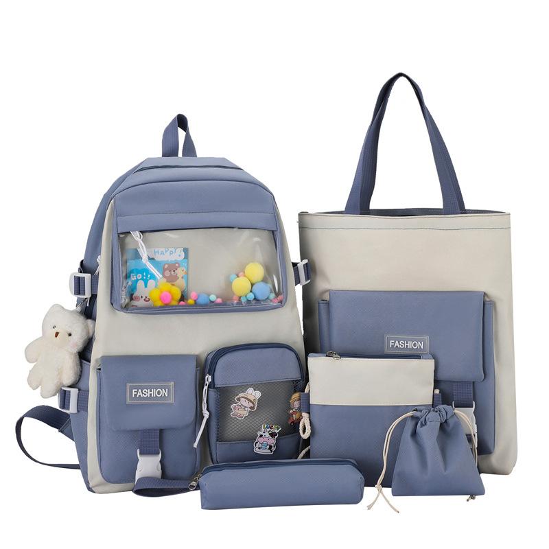 Школьный рюкзак большой вместимости, студенческий школьный рюкзак, женский, высокой ценности, из четырех частей, холщовый рюкзак, для кампуса, для средней школы, для старшей школы, легкий рюкзак