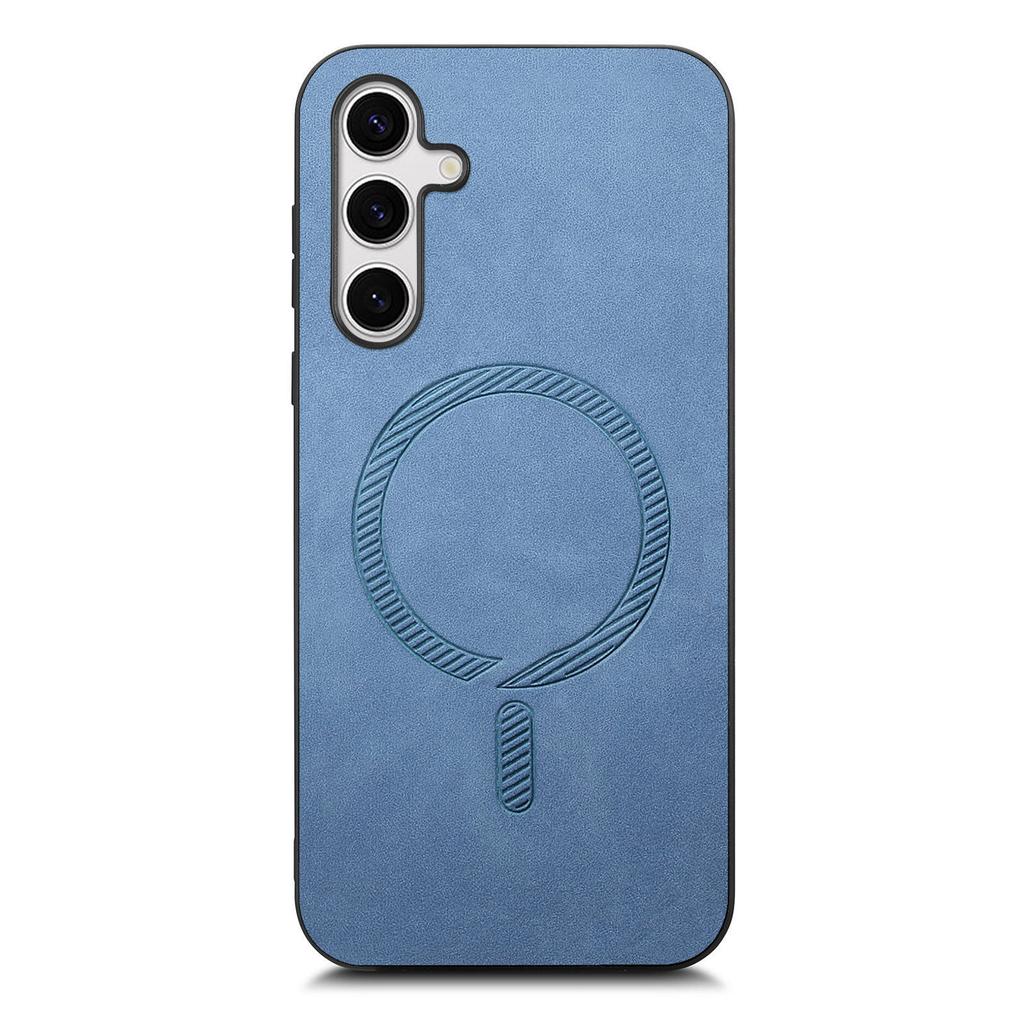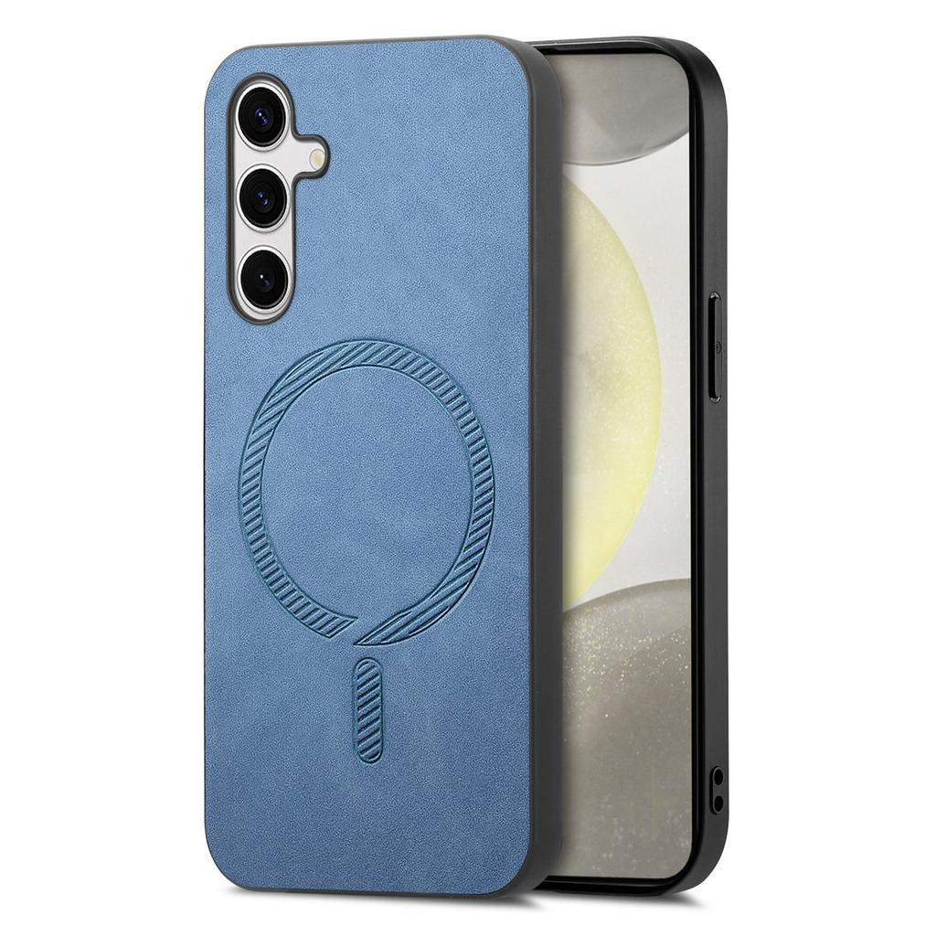 For Samsung Galaxy S25+ Leather Back Case Compatible with MagSafe Skin-touch Phone Cover