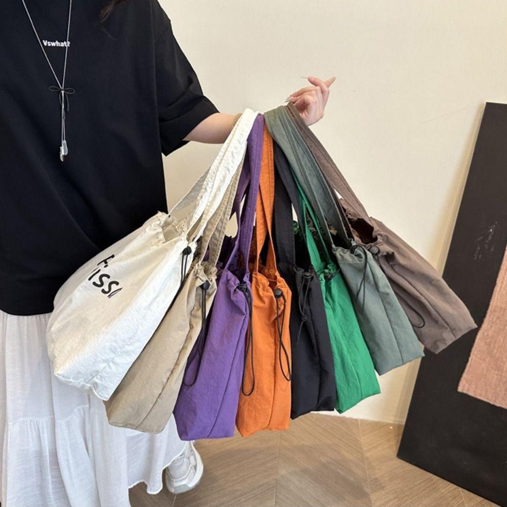 Lightweight Drawstring Tote Bags Casual Handbag Ins Letter Shoulder Bag Outdoor — купить товар онлайн с бесплатной доставкой до всему миру!