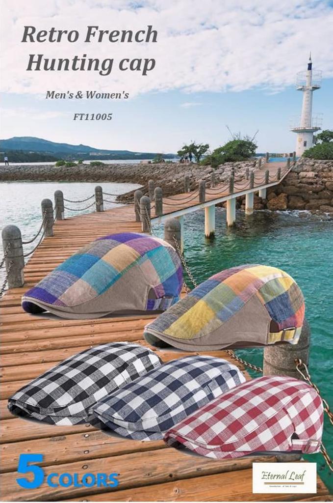 Eternal Leaf Ретро Французская Охотничья Клетка Один Размер Подходит и FT11005 Различные Кепка, Клетка, Все, Мужской Женский, (01. синий)