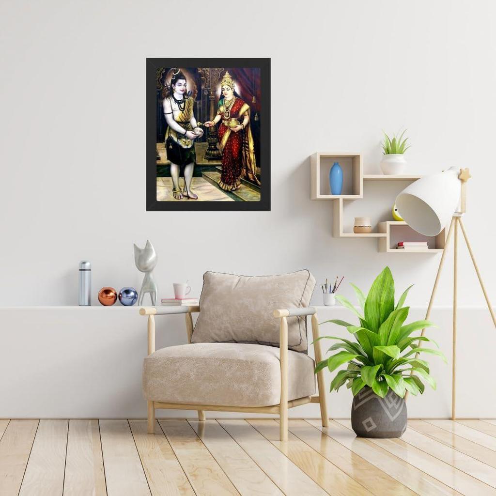 Индуистский религиозный дизайн Шивы и Маа Аннапурны Деви, Настенная картина в раме для украшения дома и в подарок, Традиционное храмовое произведение искусства
