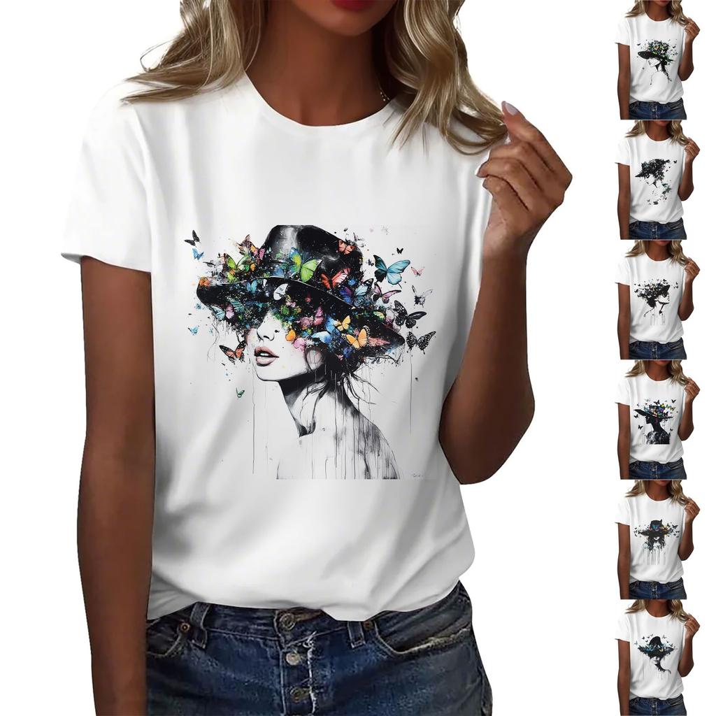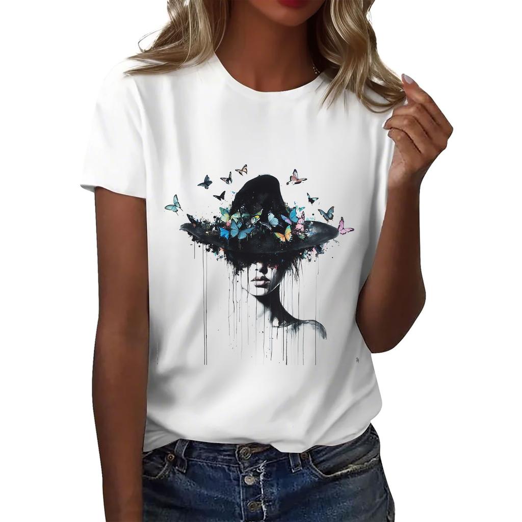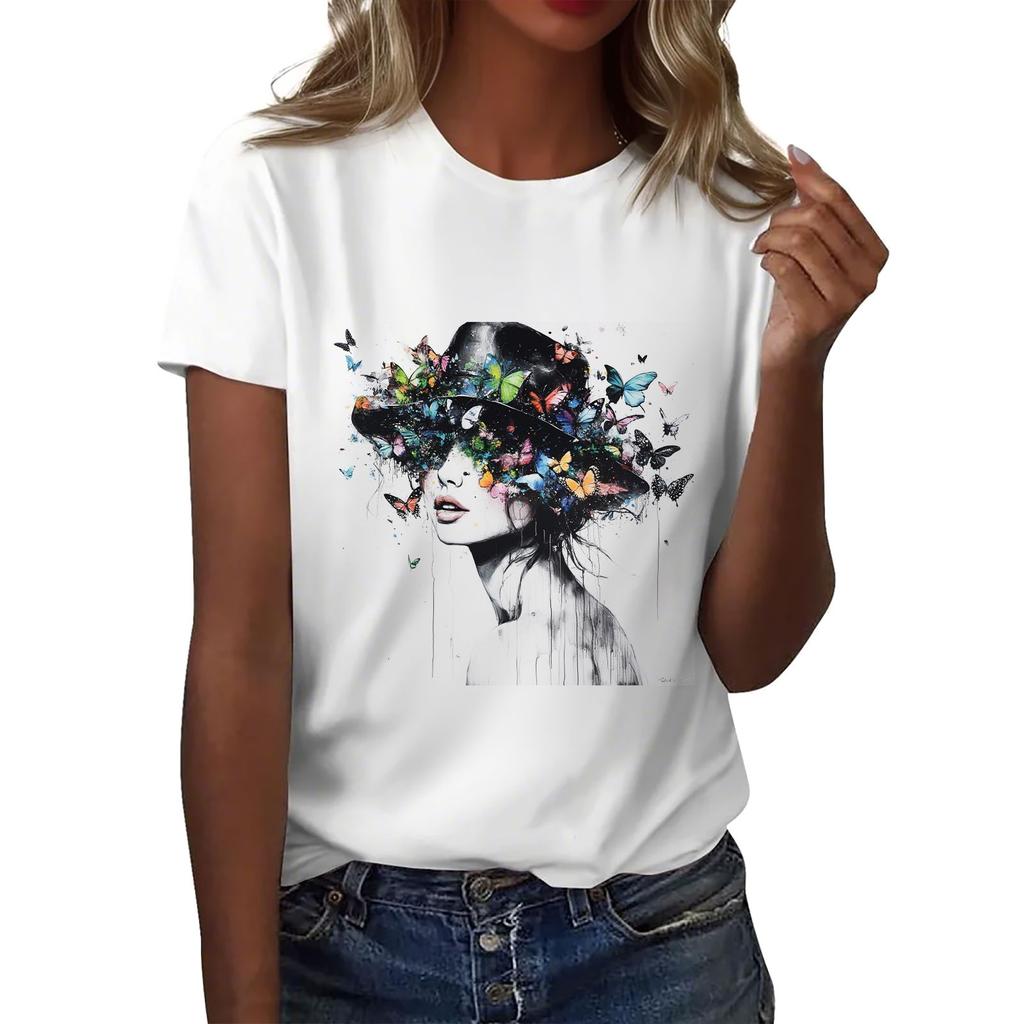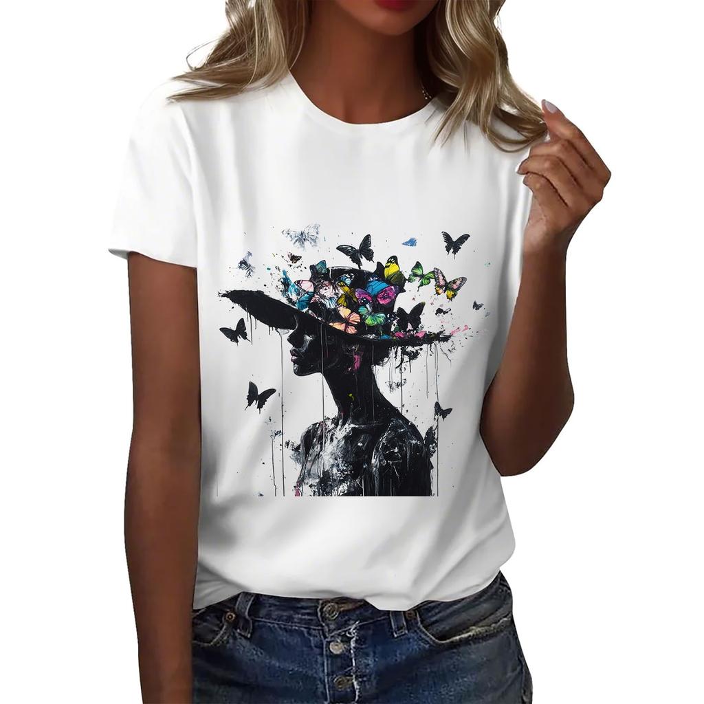 Женская повседневная футболка с круглым вырезом и короткими рукавами с принтом