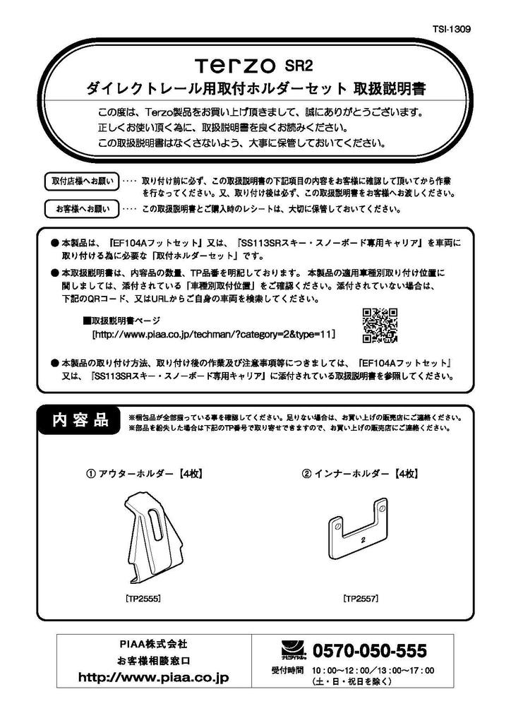 Terzo Roof Mounting Holder Set of Direct Roof Rail for Aero Bars SR2 SR2 (by PIAA) Carrier/Base Carrier, Vehicle-Specific 4, Type, Black, [Lexus RX,