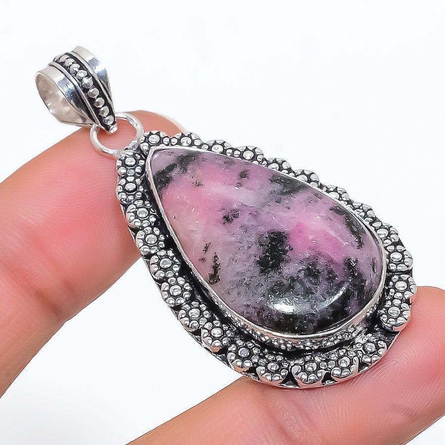Rhodonite Gemstone Handmade 925 Steling Silver Jewelry Pendant 2.01" SU-9641