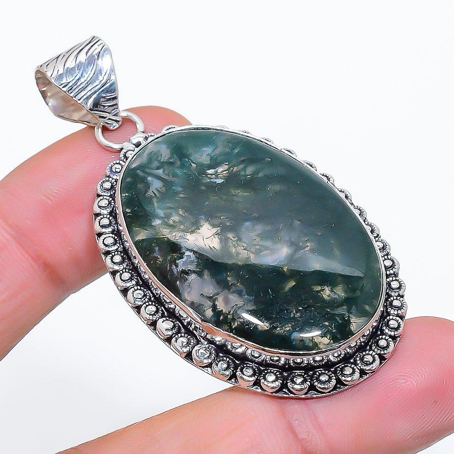 Indian Moss Agate Gemstone 925 Sterling Silver Jewelry Pendant 2.25" SU-10698