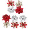 10 шт. Рождественские цветы Красные Золотые Блестящие Головки цветов Для Ноэль Домашние Украшения для Елки Навидад Вечеринка Декор для Сервировки Стола Принадлежности