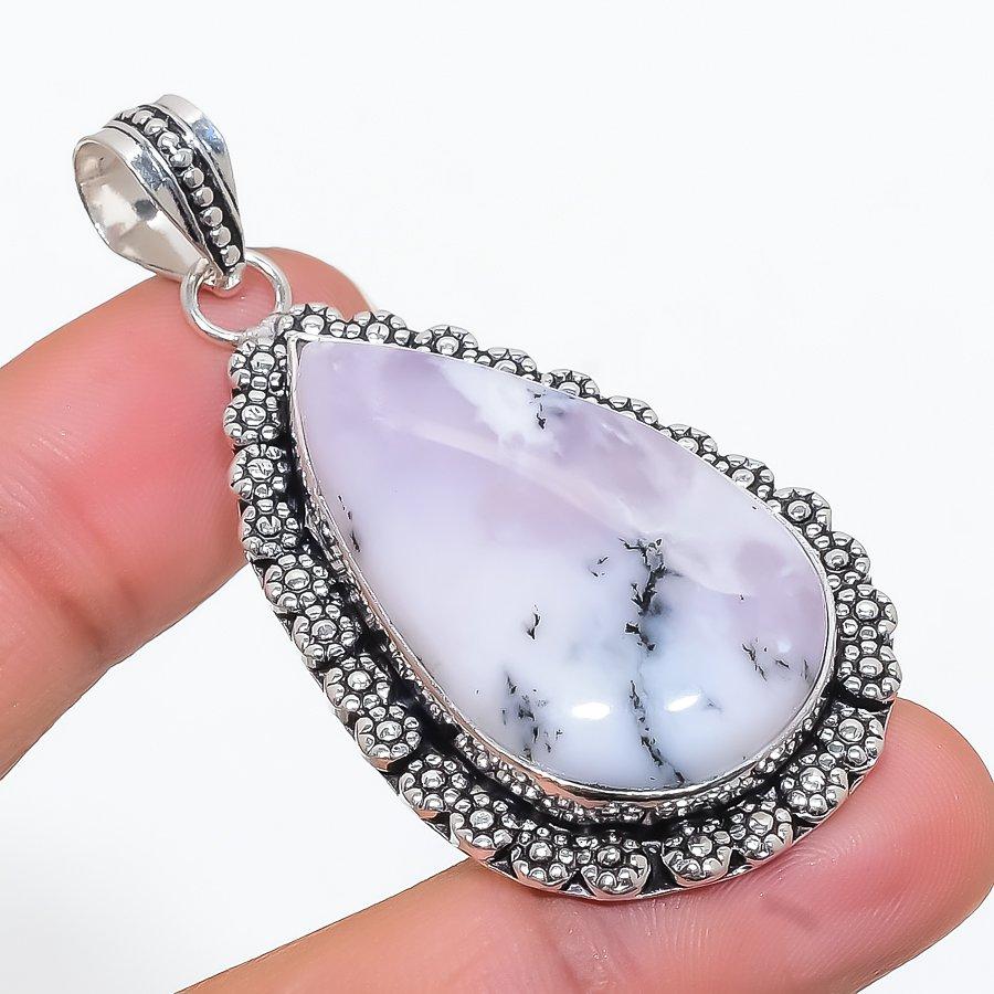 Dendrite Opal Gemstone Handmade 925 Steling Silver Jewelry Pendant 2.17" SU-9644
