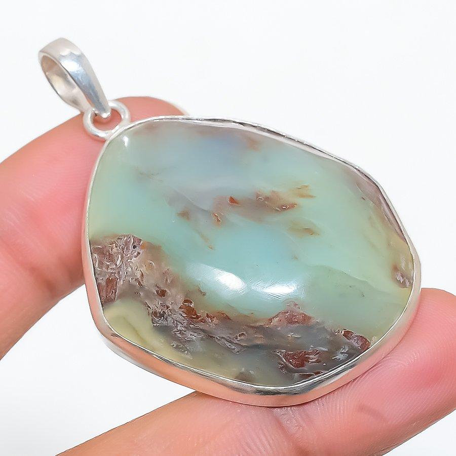 Chrysoprase Gemstone Handmade 925 Steling Silver Jewelry Pendant 2.09" SU-9652