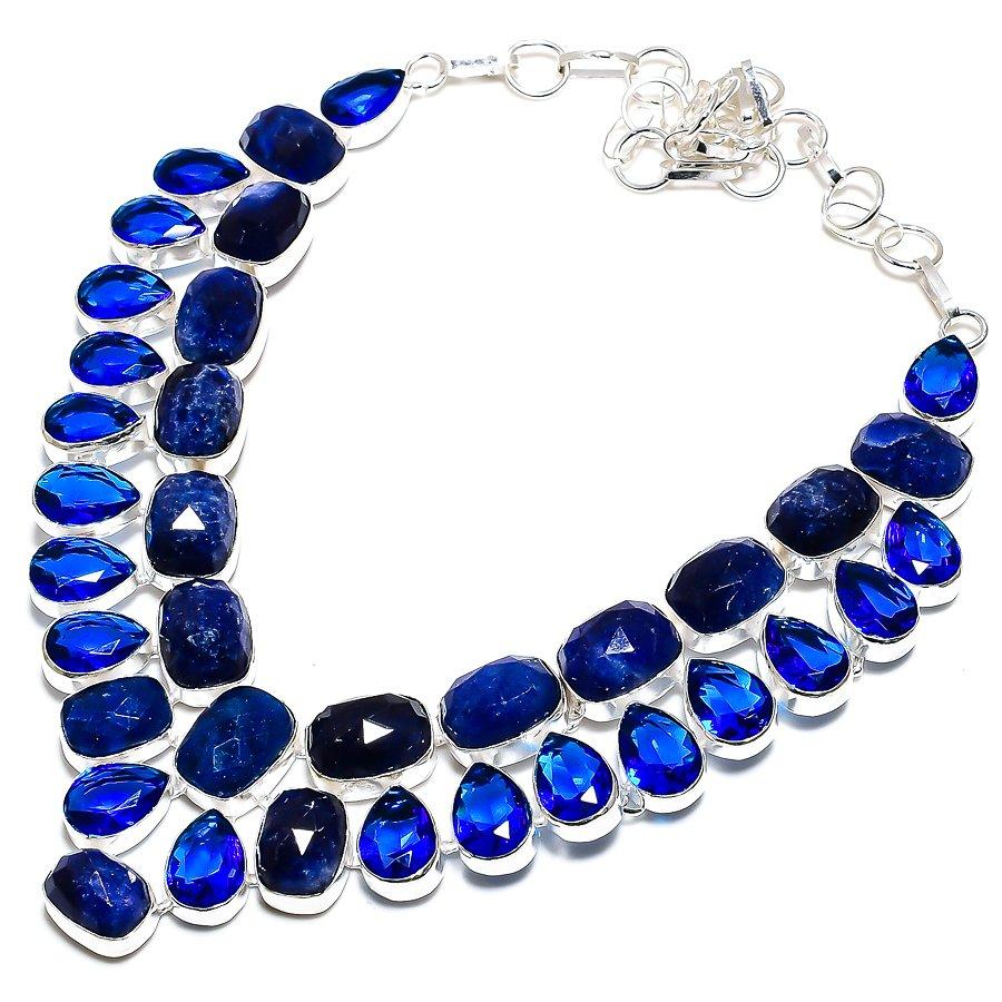 Blue Jade, Blue Topaz Gemstone 925 Sterling Silver Jewelry Necklace 18" SU-9782