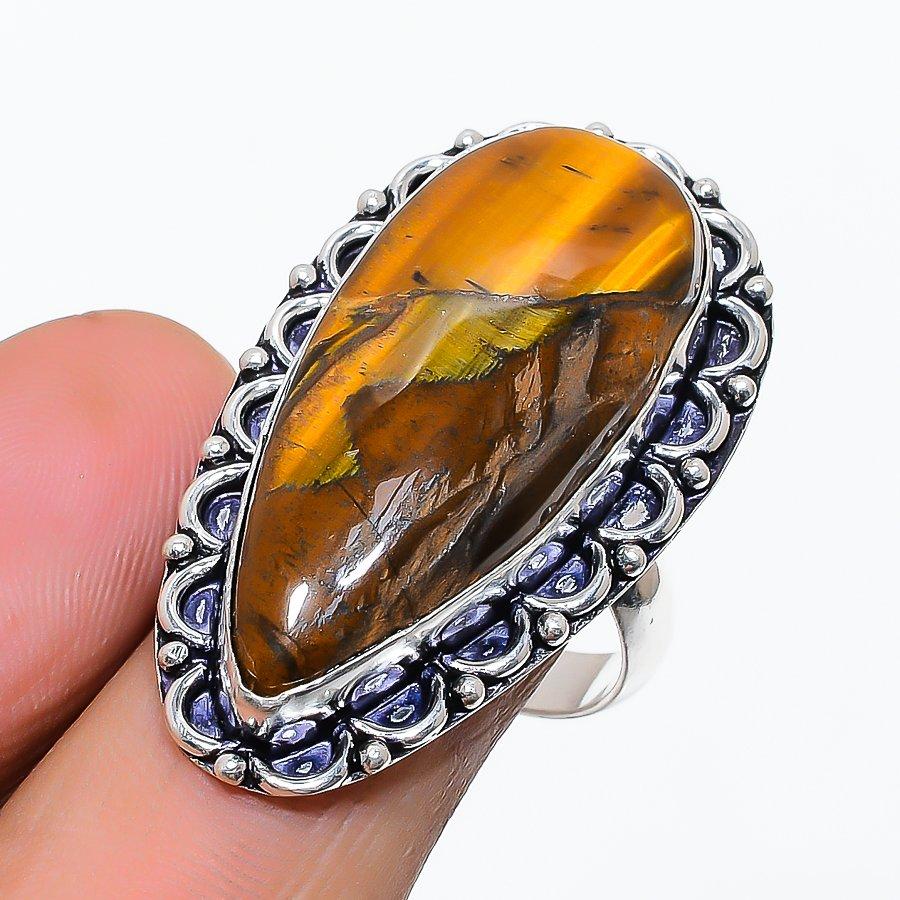 Tiger Eye Gemstone Handmade 925 Sterling Silver Jewelry Ring Size 9 SU-10549
