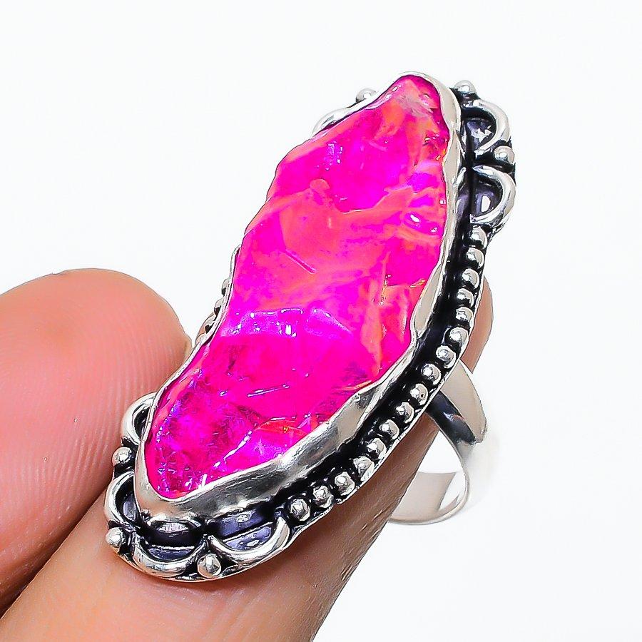 Crystal Titanium Gemstone Handmade 925 Sterling Silver Jewelry Ring Size 8 SU-10563