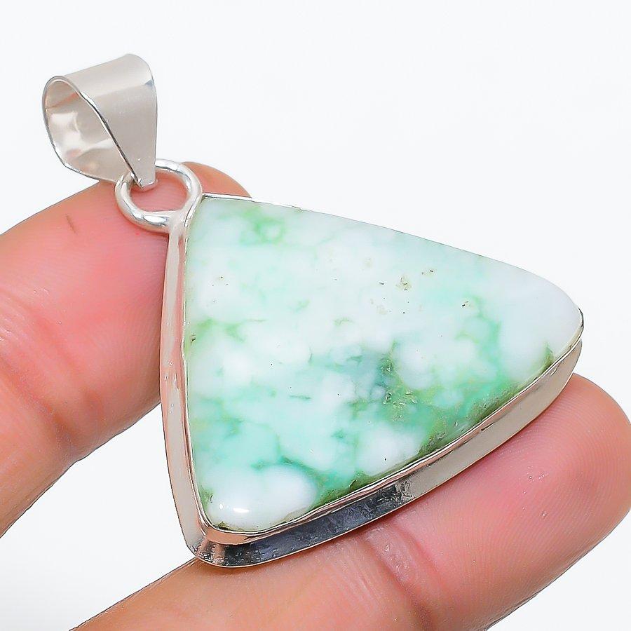 Chrysoprase Gemstone 925 Solid Sterling Silver Jewelry Pendant 1.62" SU-10324
