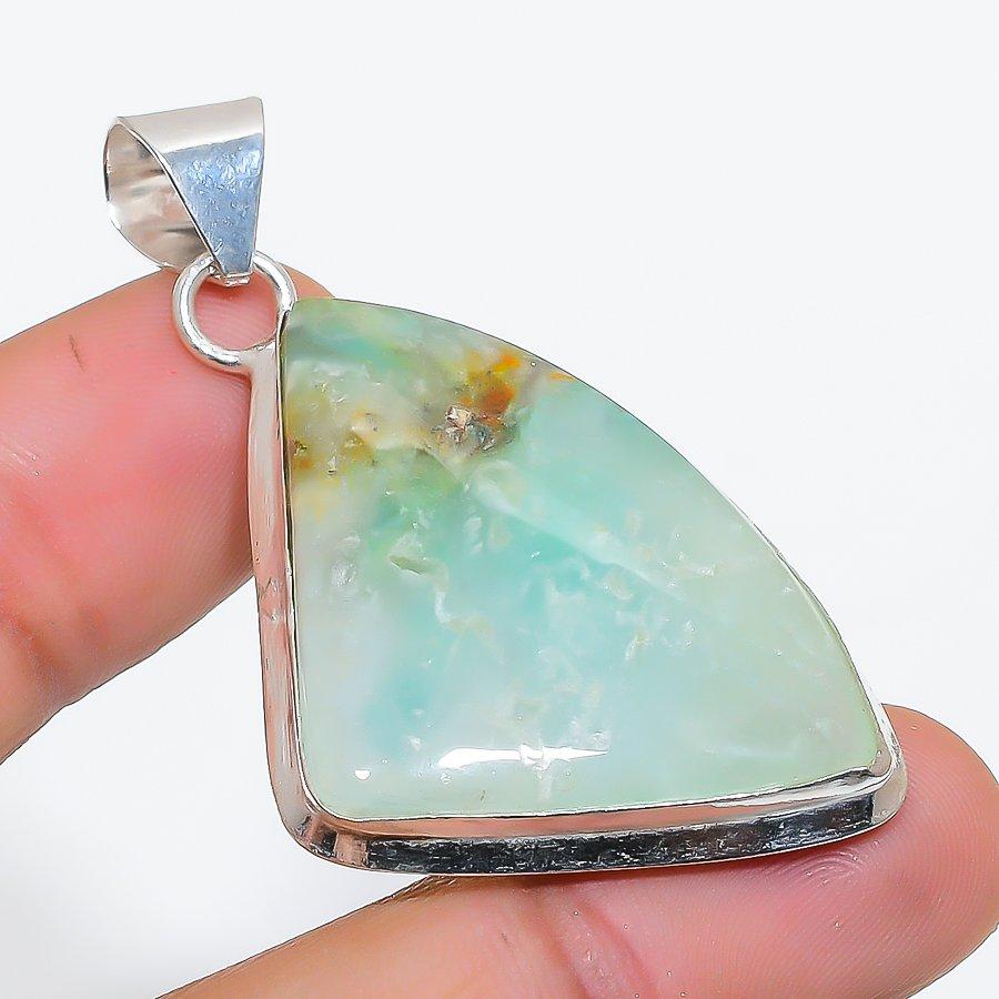 Chrysoprase Gemstone 925 Solid Sterling Silver Jewelry Pendant 2.05" SU-10326