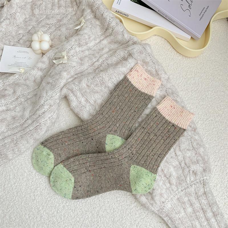 Детские толстые носки из осенне-зимней пряжи, цветные, из точечной пряжи, кашемировые, утолщенные, теплые, шерстяные, до середины икры, махровые