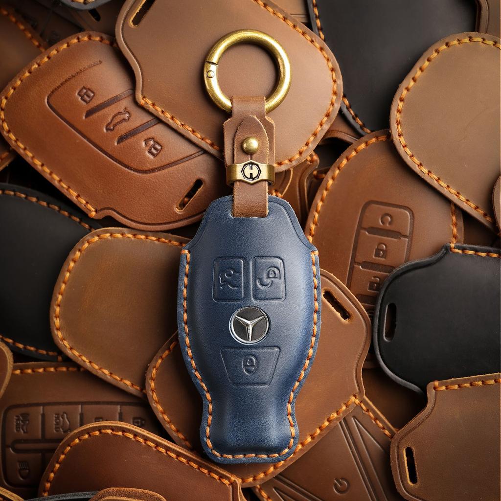 The retro key cover is suitable for the old Mercedes-Benz E300L C200L pure handmade leather key protection case ring.