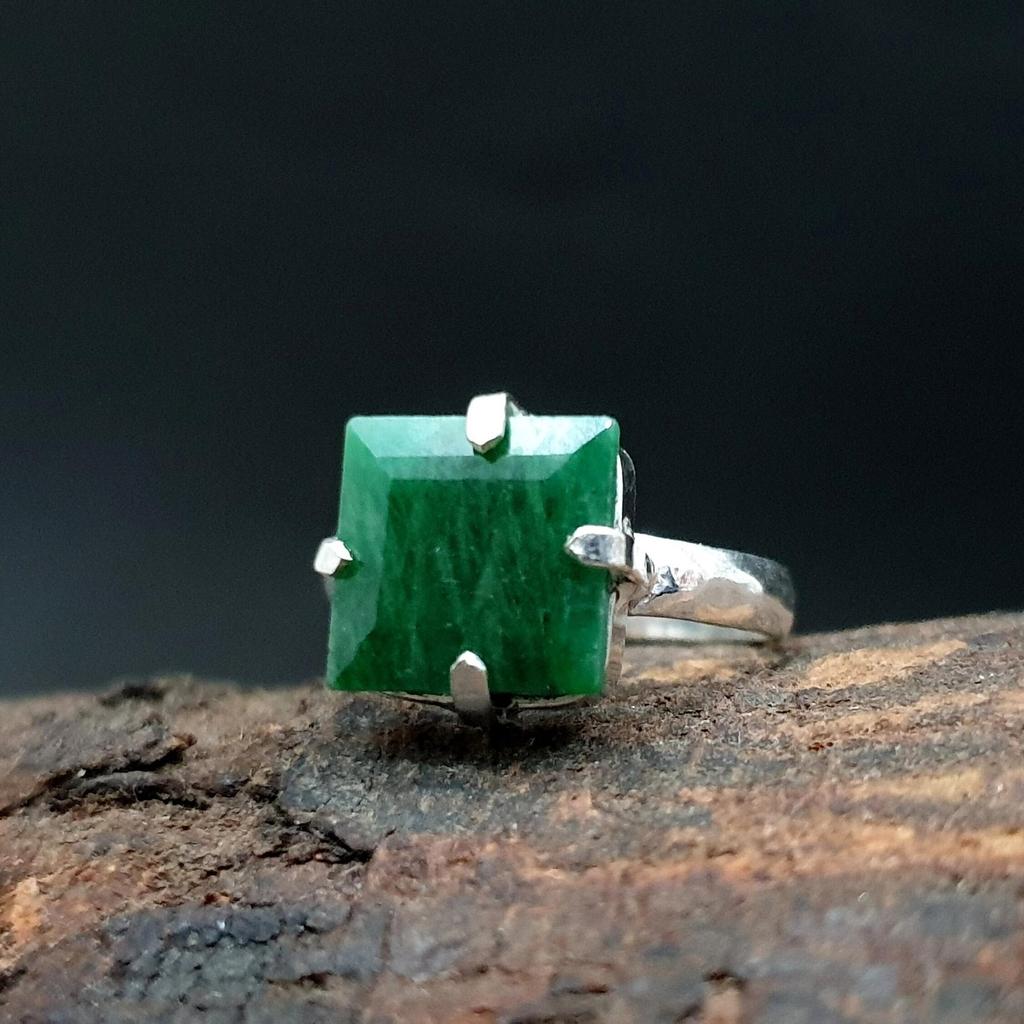 Кольцо из стерлингового серебра 925 пробы с необработанным насыщенным зеленым изумрудом в крапановой оправе, Ювелирное изделие, Подарок на королевскую свадьбу, Изумрудное кольцо