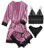 Испытайте максимальный комфорт и элегантность с этим летним пижамным набором из 4 предметов, разработанным для женщин. Изготовленный из высококачественного полиэстера с роскошной атласной отделкой без стрейча, комплект включает в себя нежную кружевную майку, шикарный халат, подходящие шорты и пижамные брюки.. Идеально для теплых ночей, каждое изделие обеспечивает легкое и дышащее ощущение, при этом излучая чувство непринужденного стиля.. Побалуйте себя идеальным сочетанием комфорта и изысканности для вашей коллекции одежды для сна.