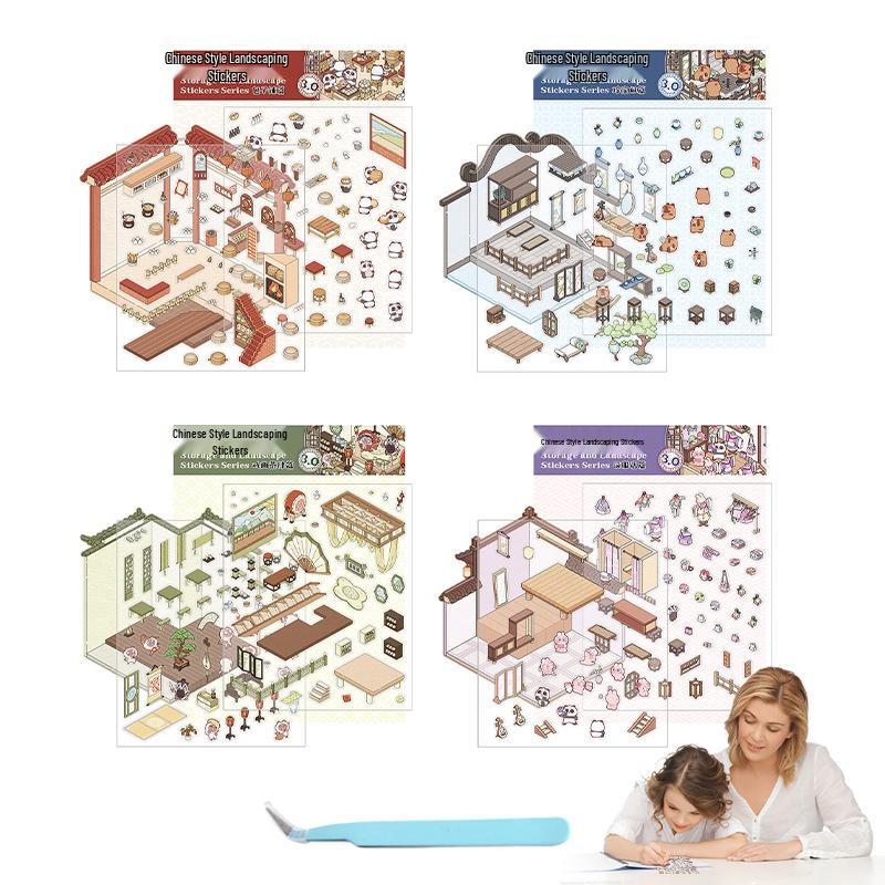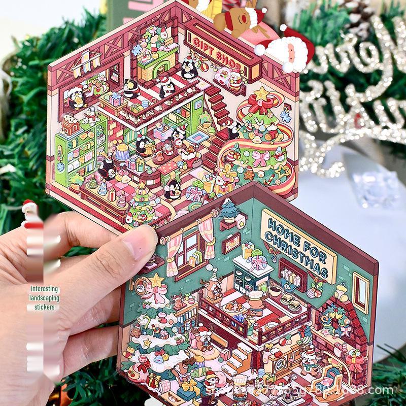 Senyou 3.0 Рождественский коттедж 3D Миниатюрная сцена наклейки - Эксклюзивный DIY Ландшафтный декор