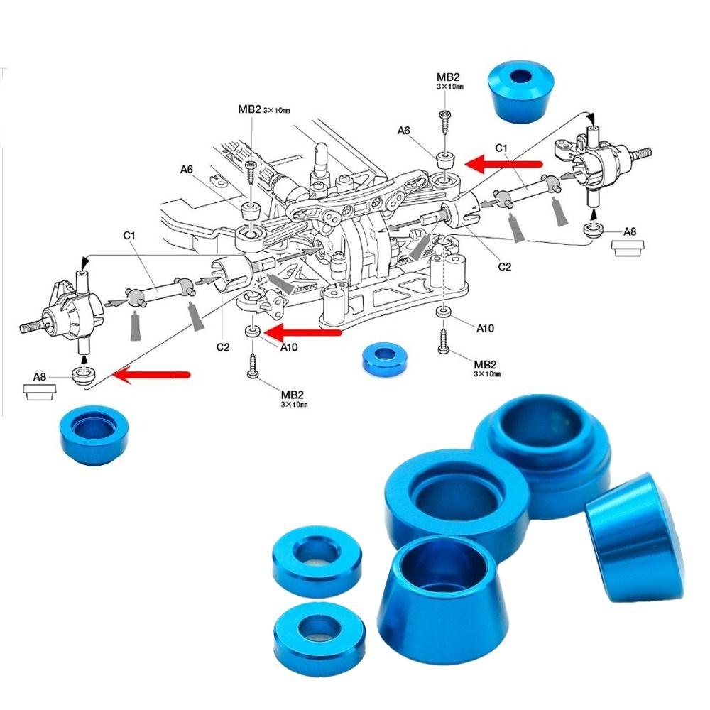 6pcs Aluminum Alloy Steering Knuckle Blue Bushing Gasket RC Car Upgrade Parts for Tamiya TT02