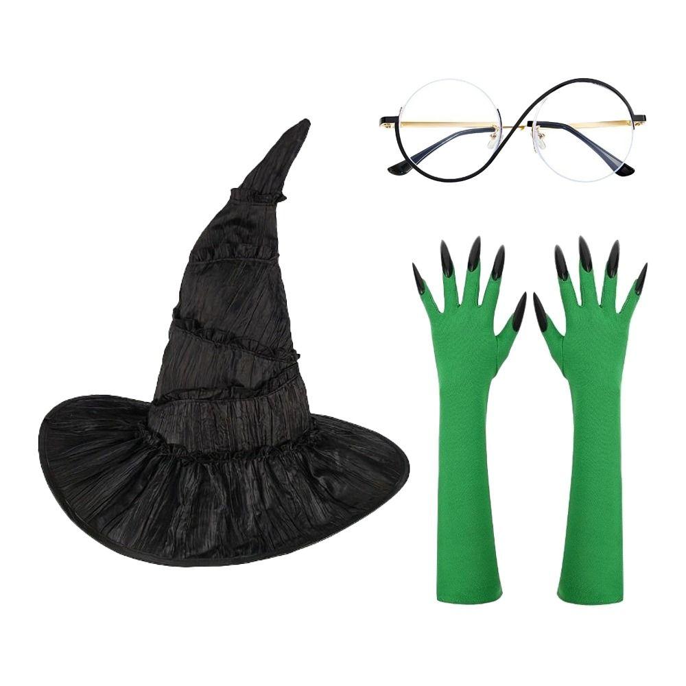 3pcs Glasses and Gloves Witch Cos Hat Kit Halloween Costume Headgear Party Role Play Cap for Adults
