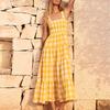 Женское повседневное платье миди без рукавов, свободное платье в клетку в стиле бохо, летний пляжный сарафан