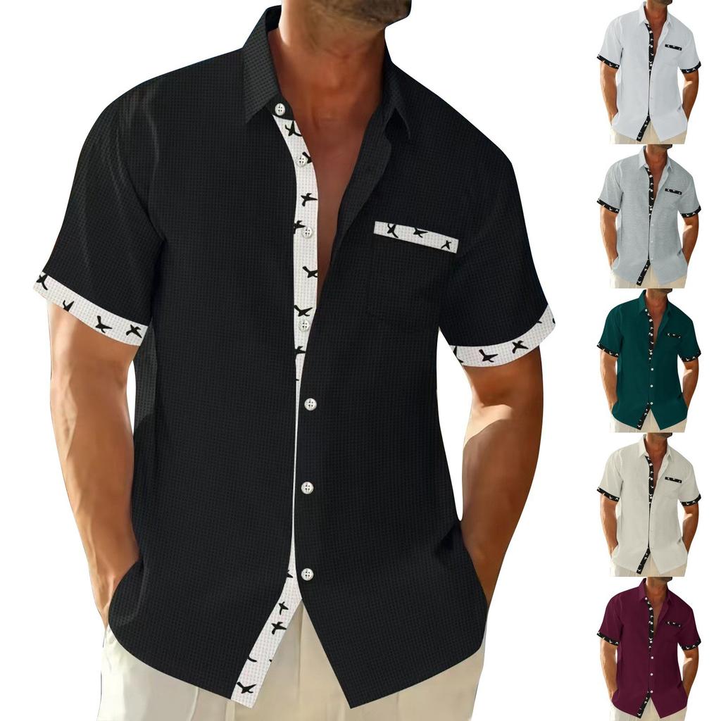 Мужская повседневная деловая рубашка с цветочным принтом и коротким рукавом, мужская рубашка с воротником-лацкан на пуговицах