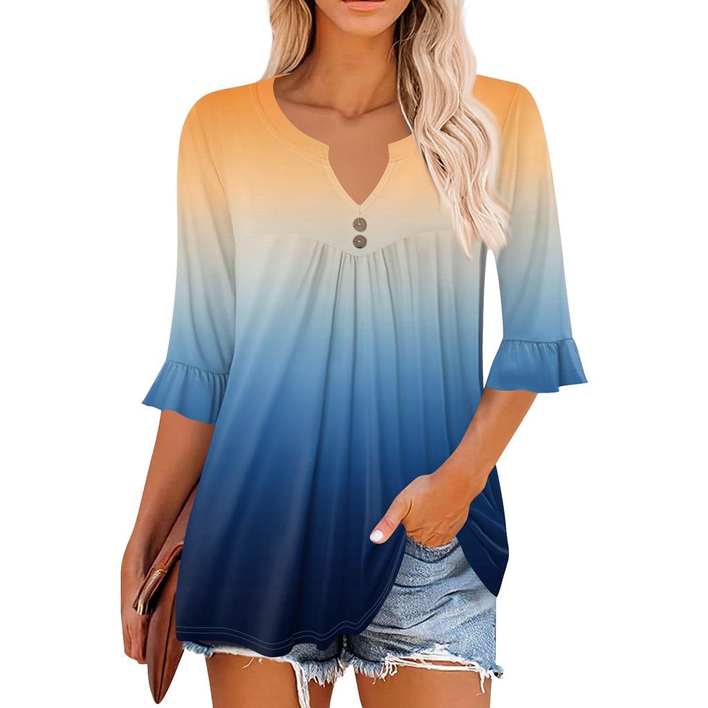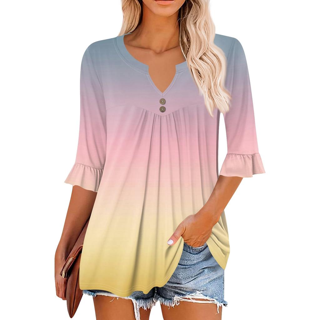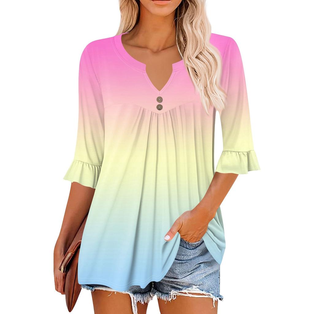3/4 рукава топы для женщин повседневные оборки V-образный вырез футболки рабочие блузки нарядные туники топы