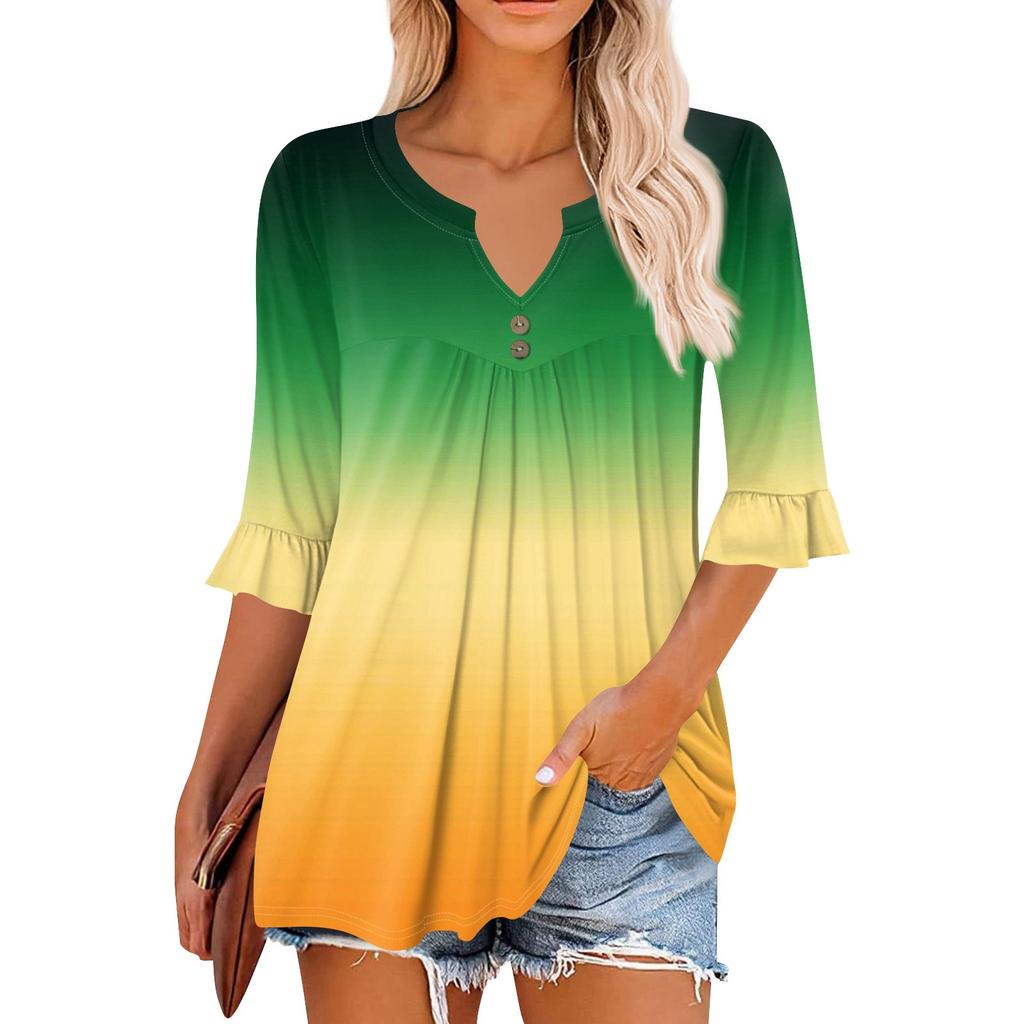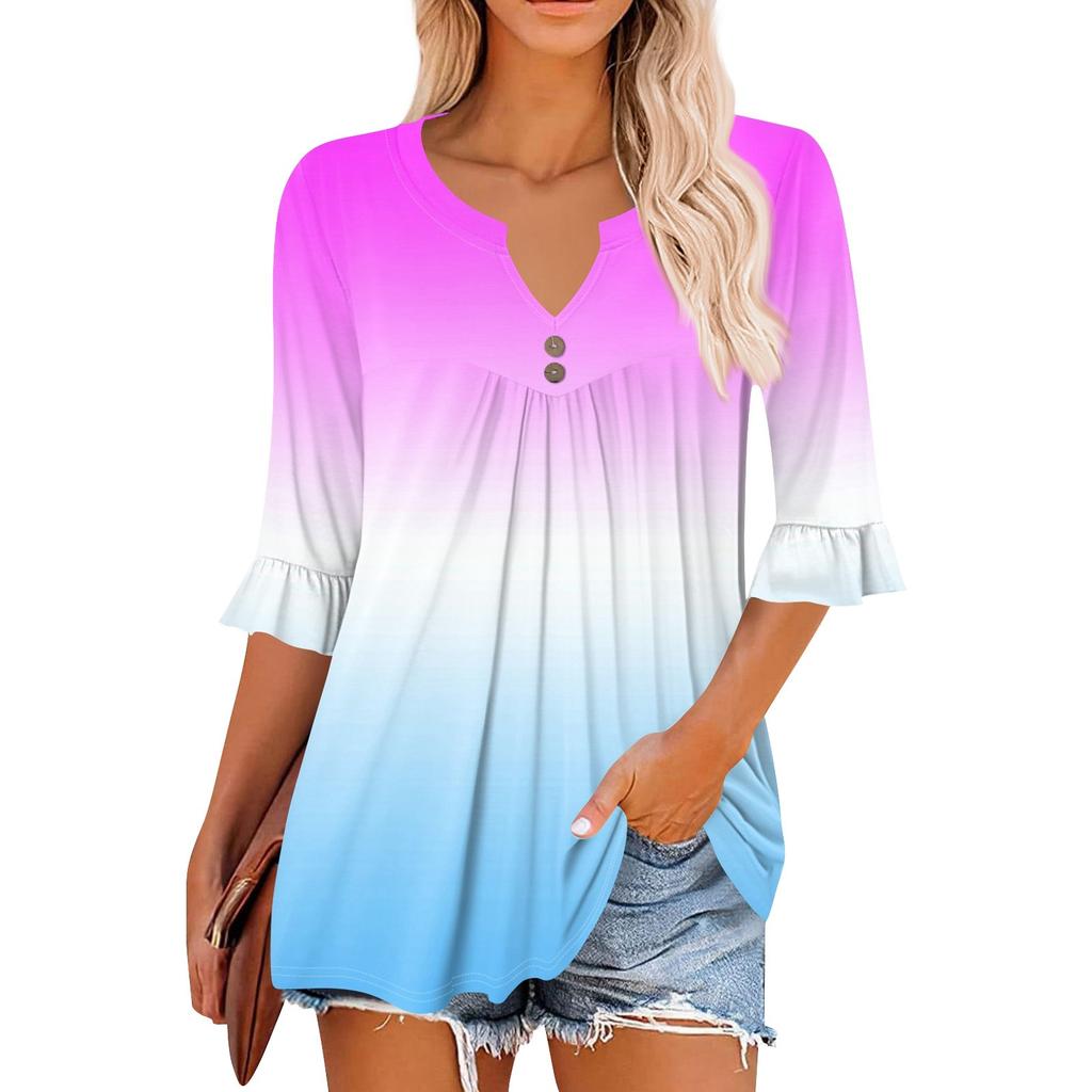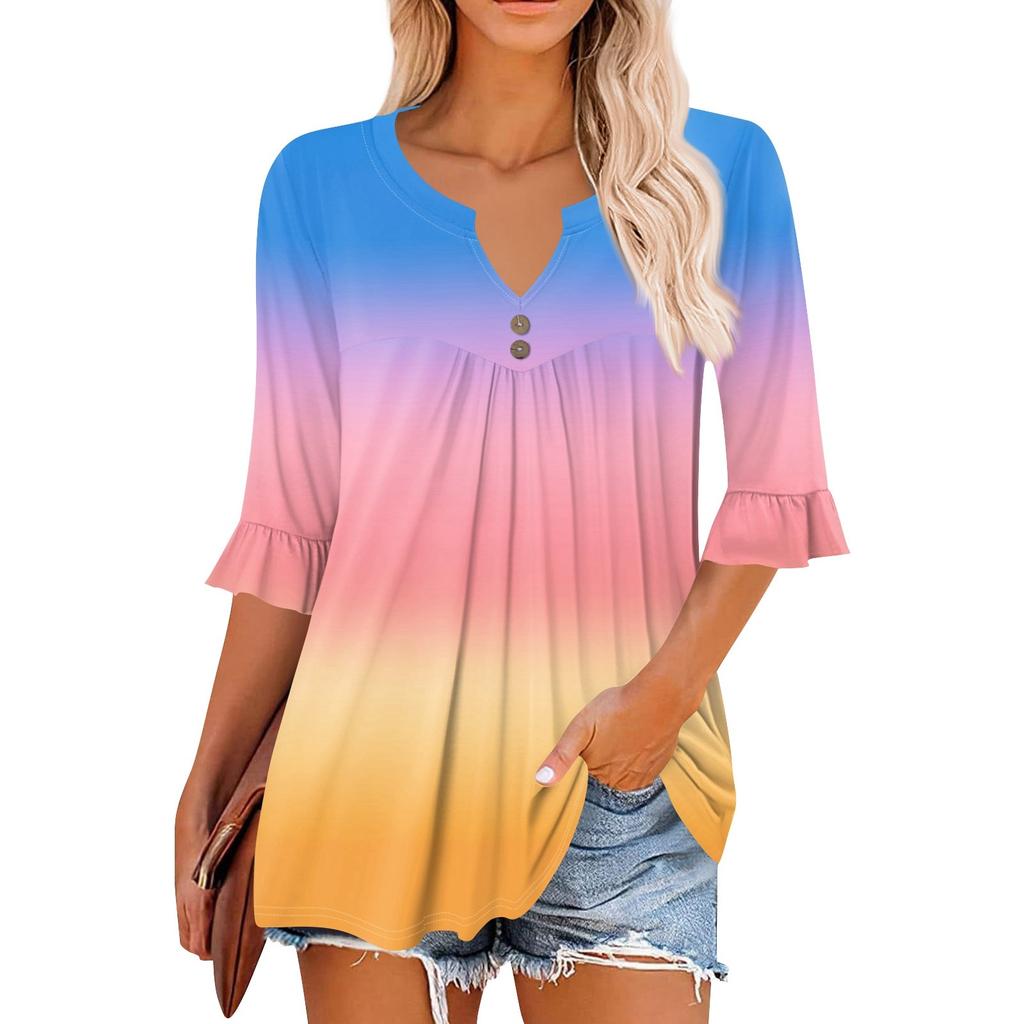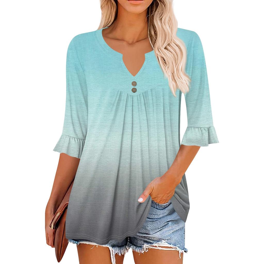 3/4 рукава топы для женщин повседневные оборки V-образный вырез футболки рабочие блузки нарядные туники топы