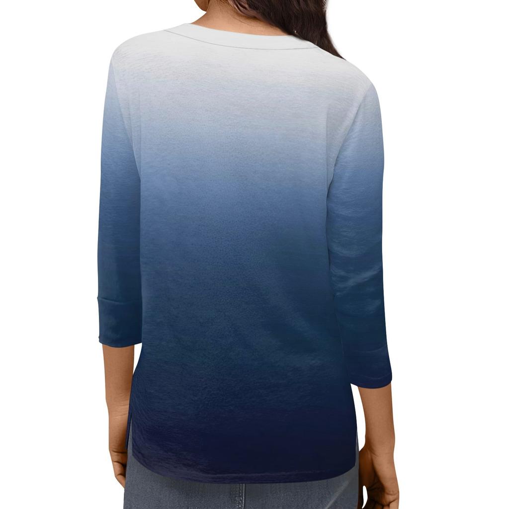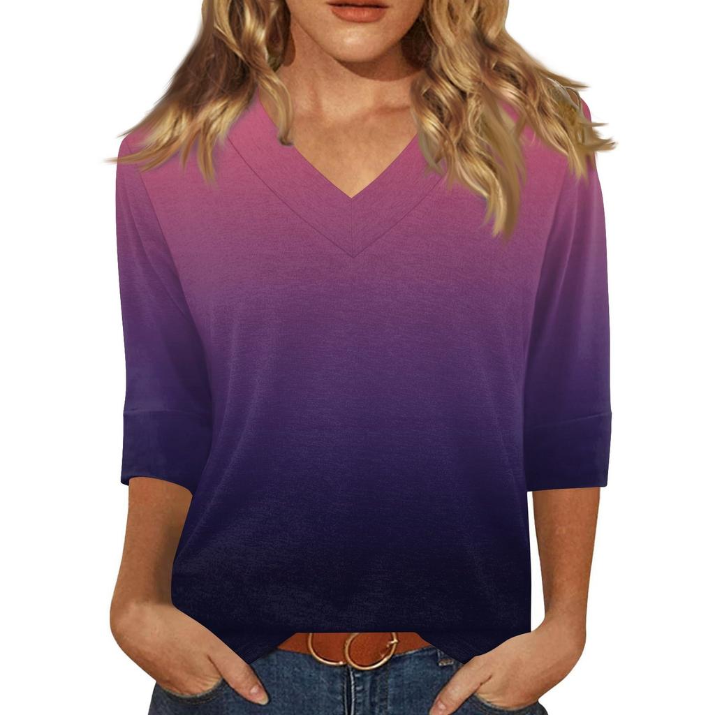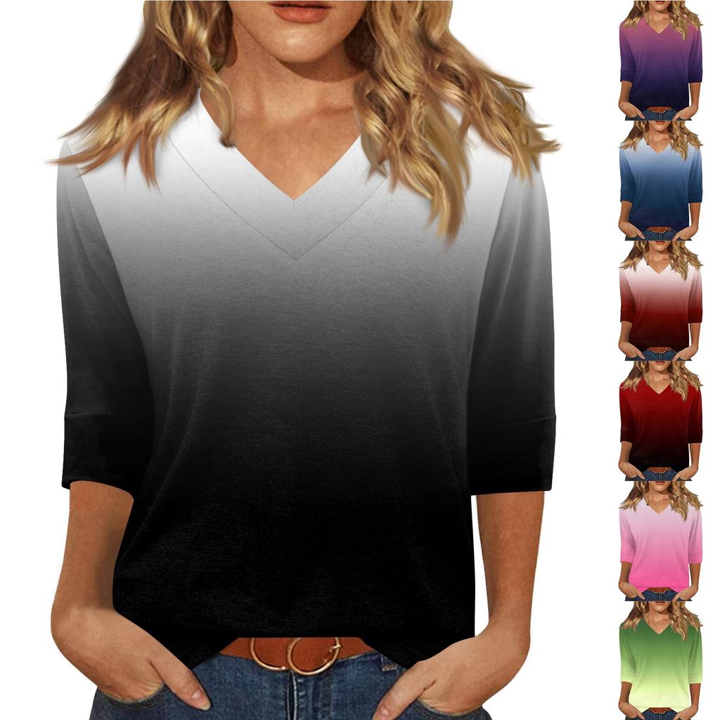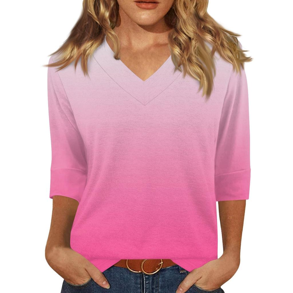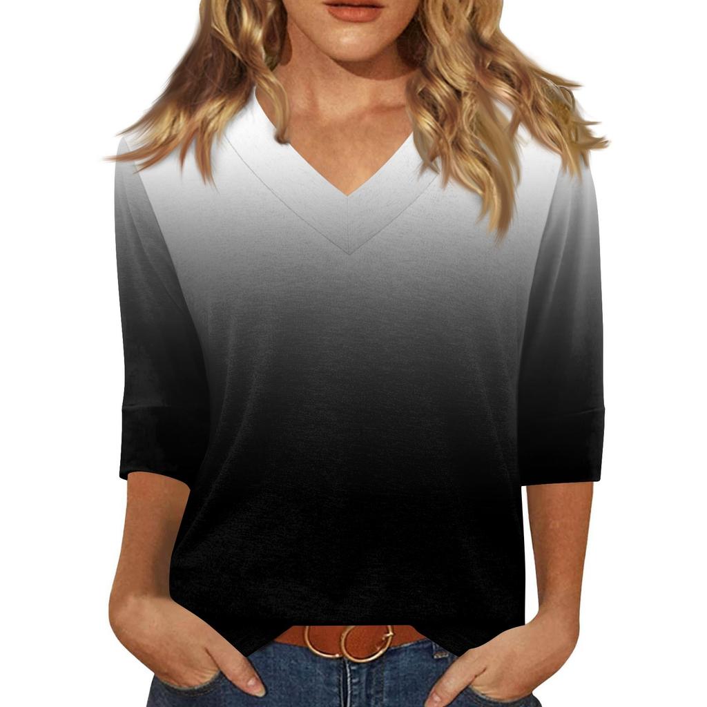 Женская модная повседневная свободная футболка с v-образным вырезом и рукавами 3/4 с принтом, женский топ