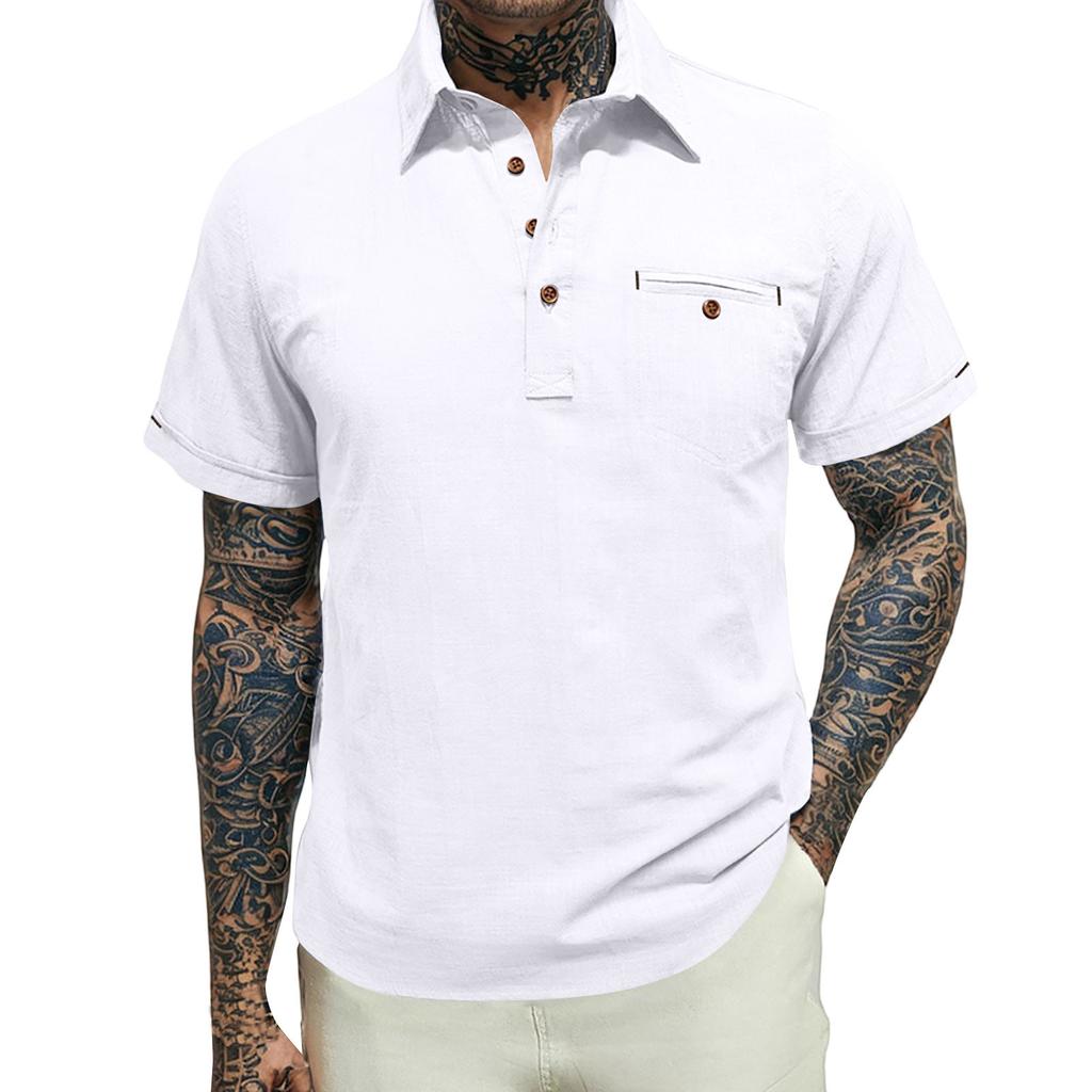 Мужская повседневная рубашка с короткими рукавами и отделкой пуговицами и лацканами